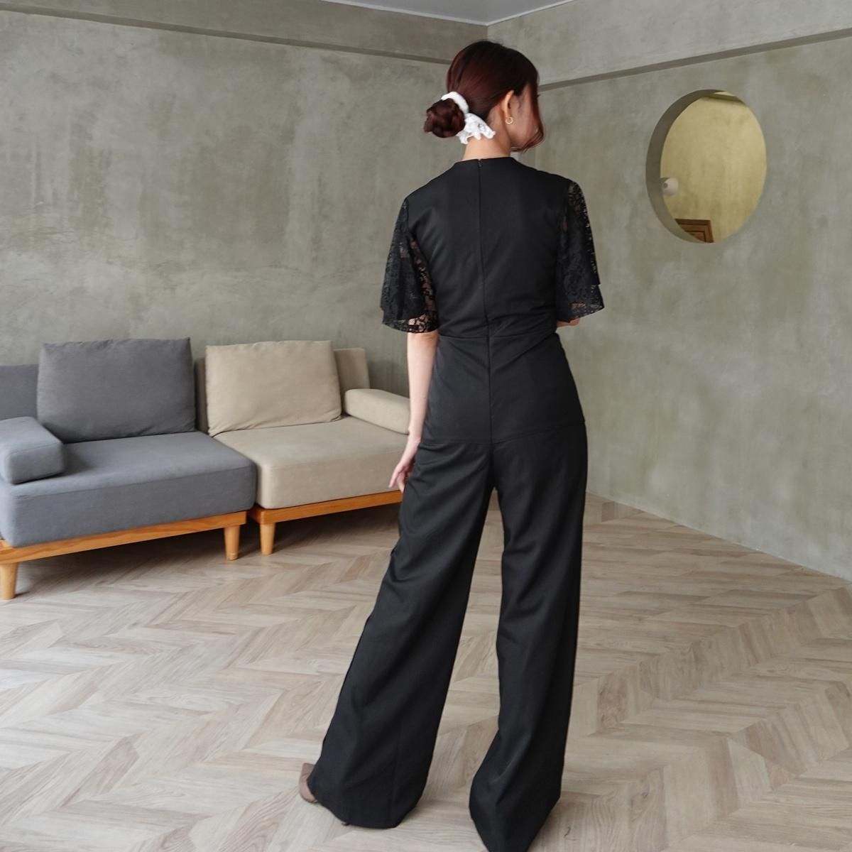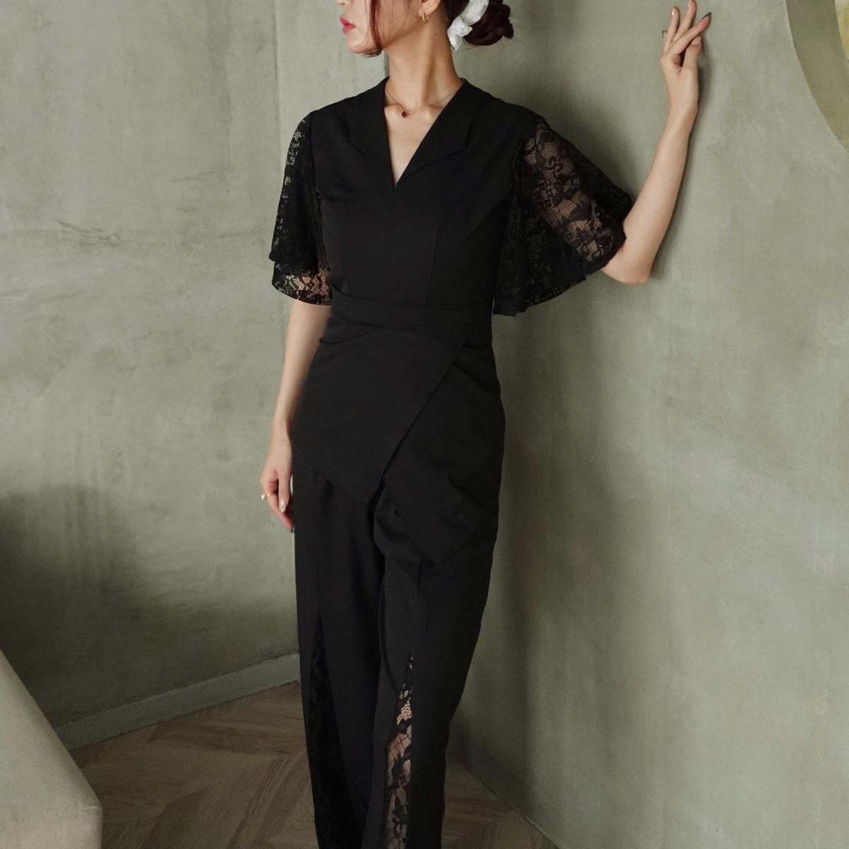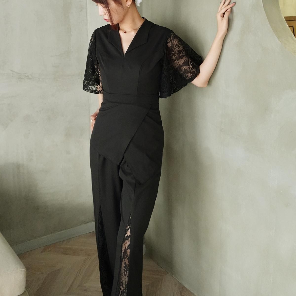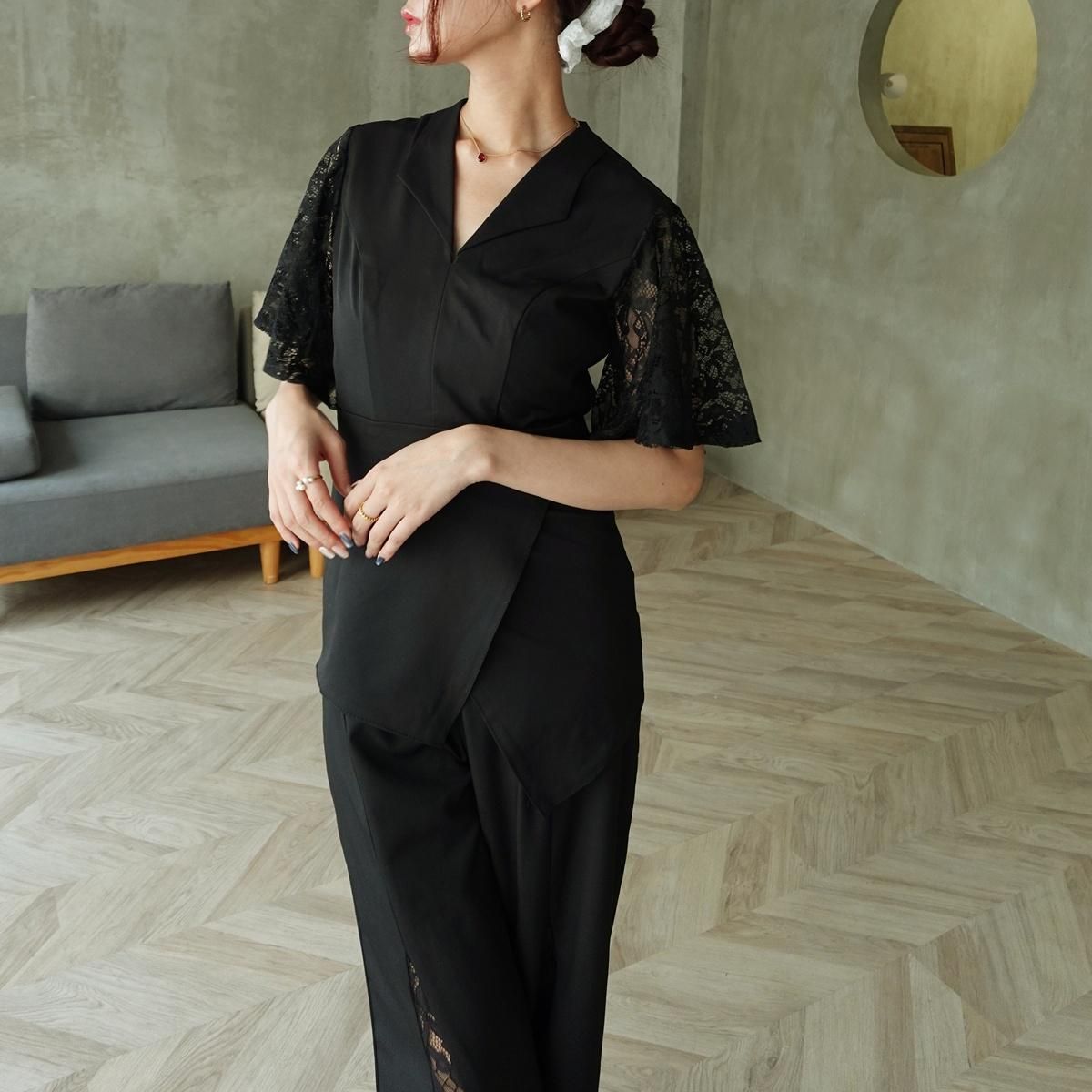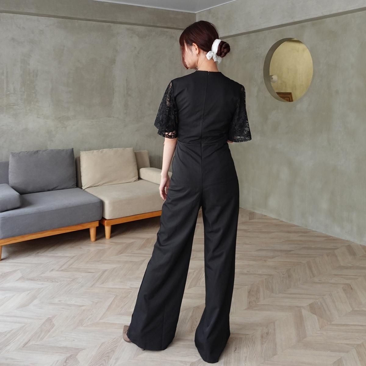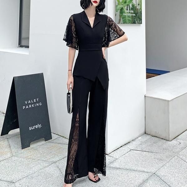 ワイドパンツ×花柄レースが足を長く、きれいに見せてくれます。