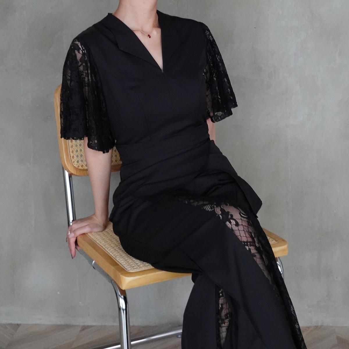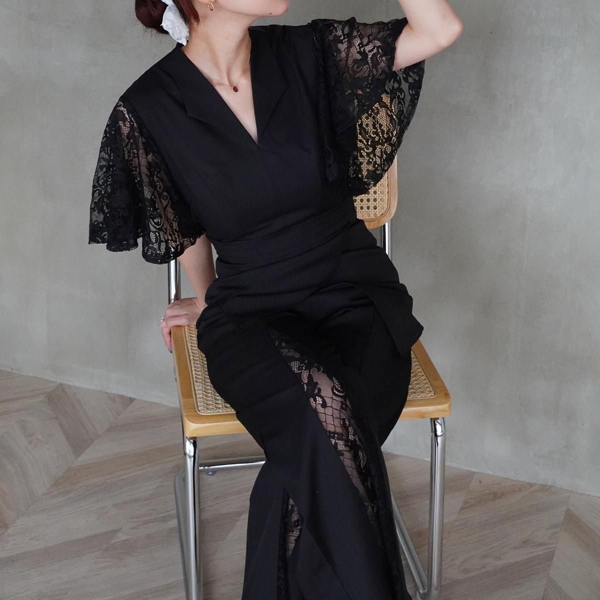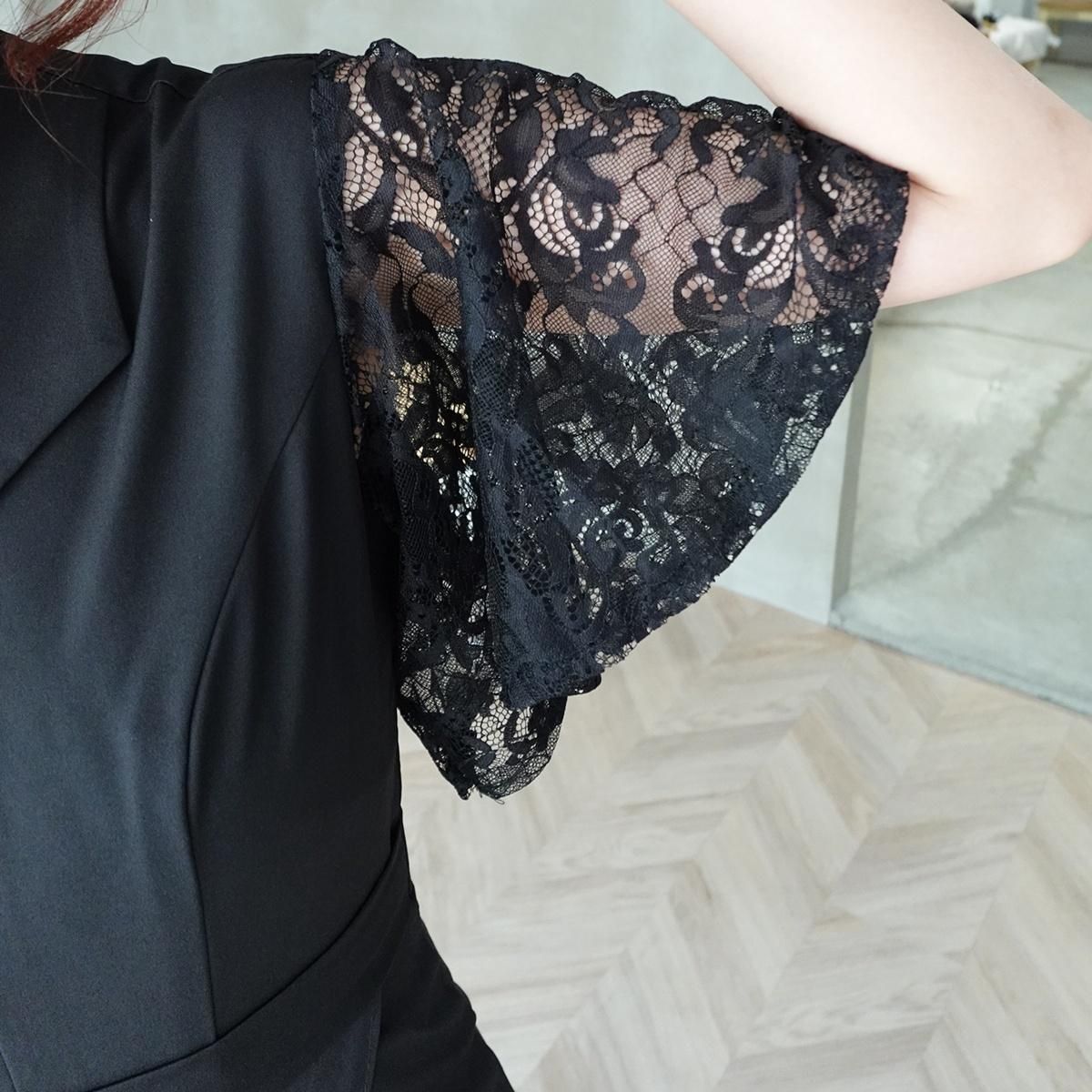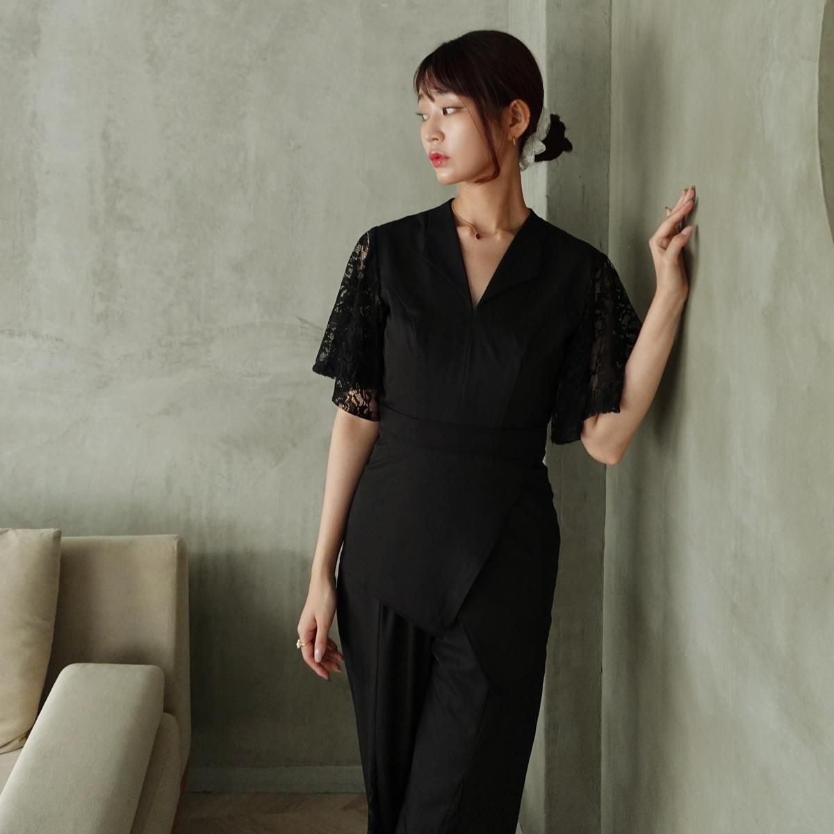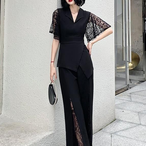 ワイドパンツ×花柄レースが足を長く、きれいに見せてくれます。
