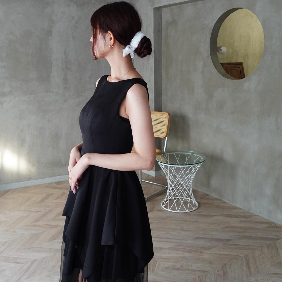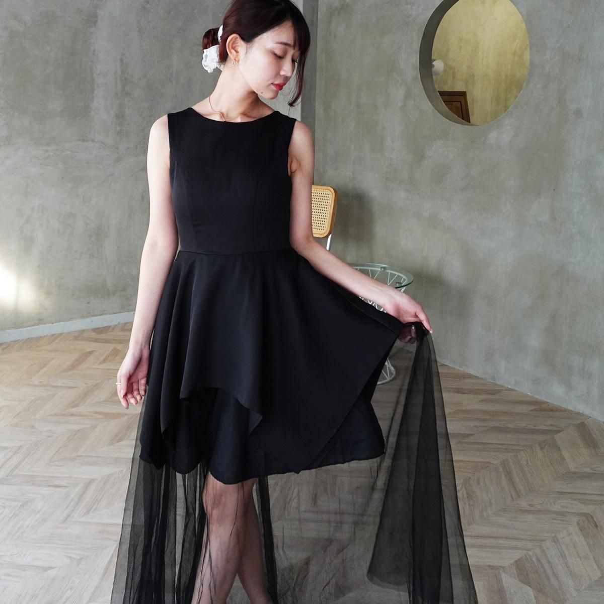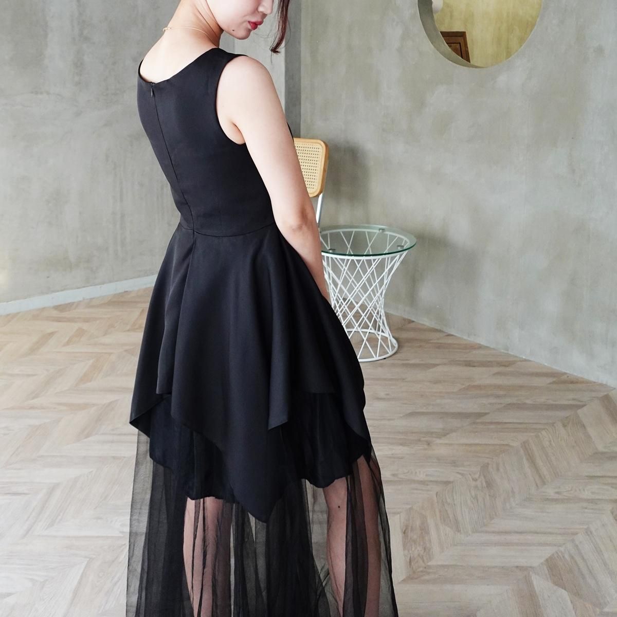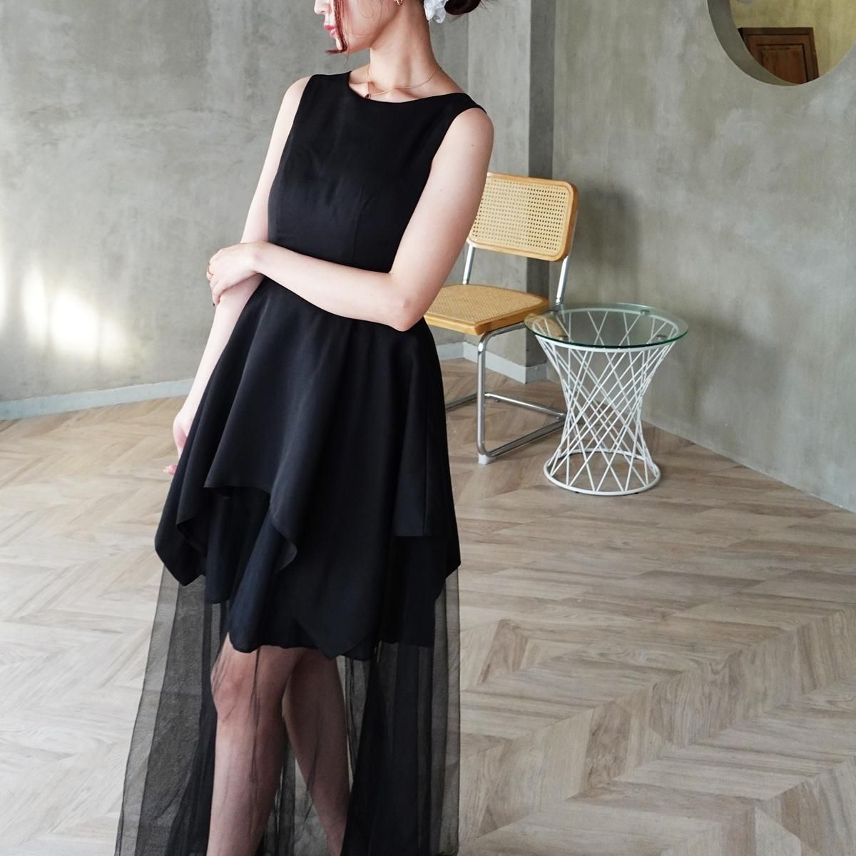 ドレス ペプラム 切り替え シアー Aライン クルーネック ノースリーブ ロングドレス ハイウェスト エレガント シック 二次会 パーティー お呼ばれ