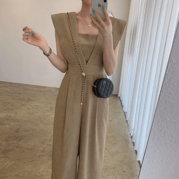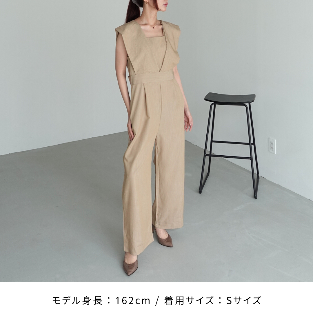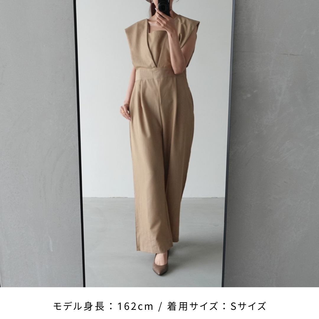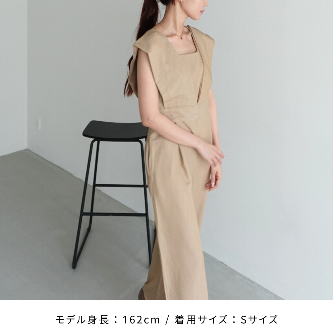 ナチュラルな風合いを持つ、リラキシーなパンツドレスです。