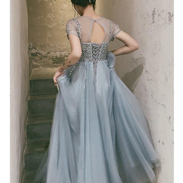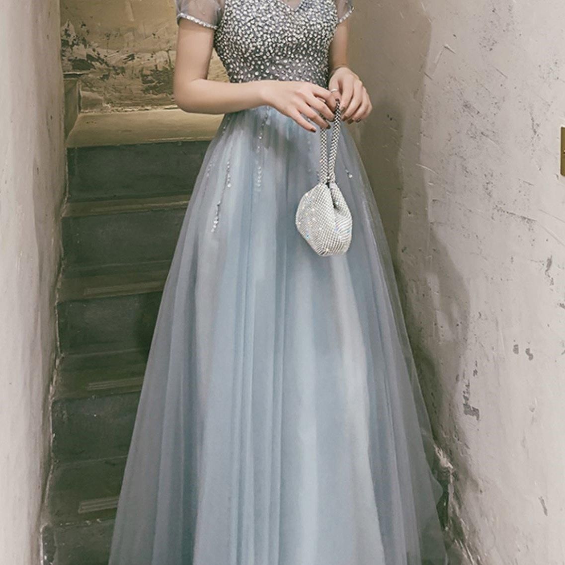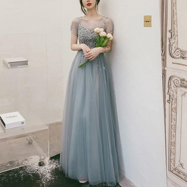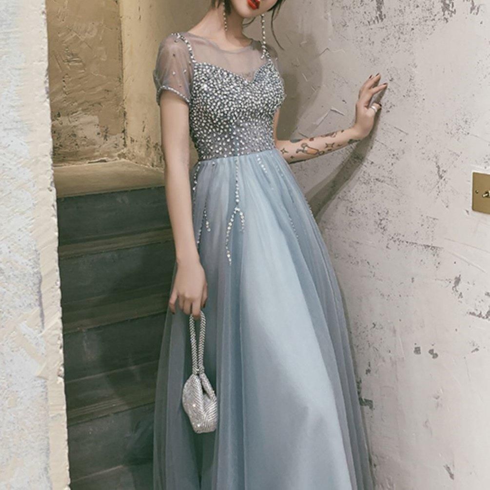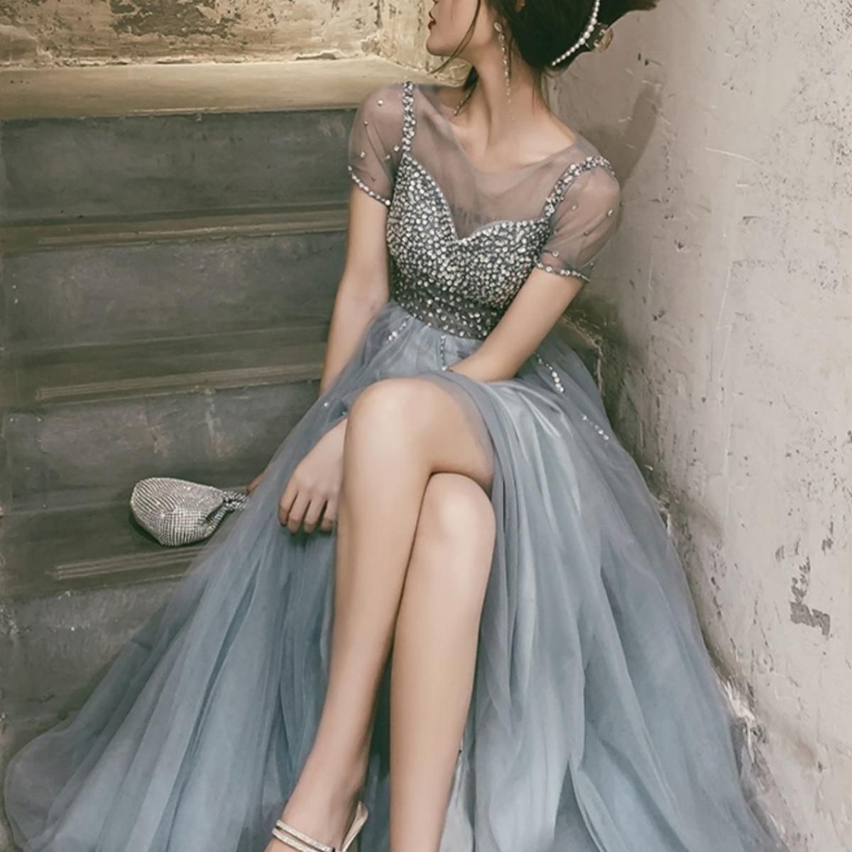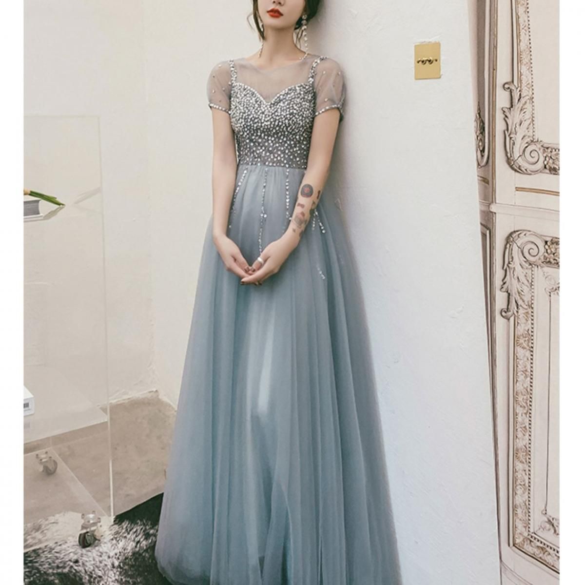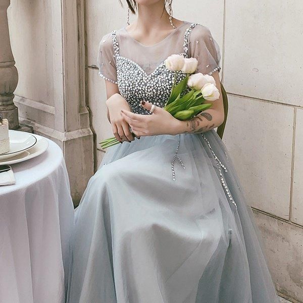 胸元のスパンコールがゴージャスなドッキングロングドレス。
