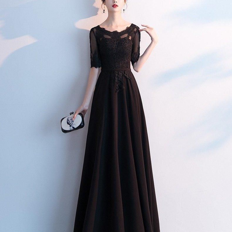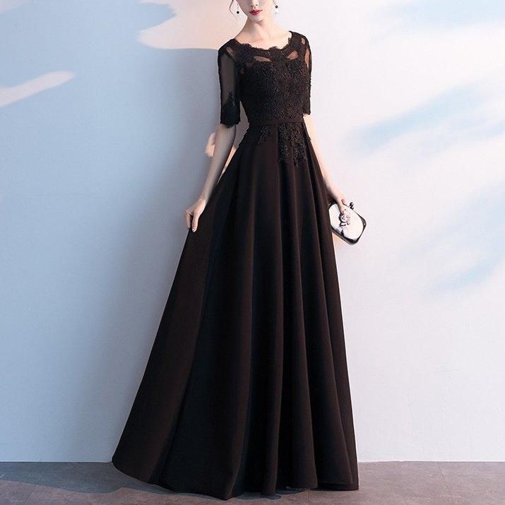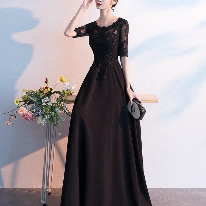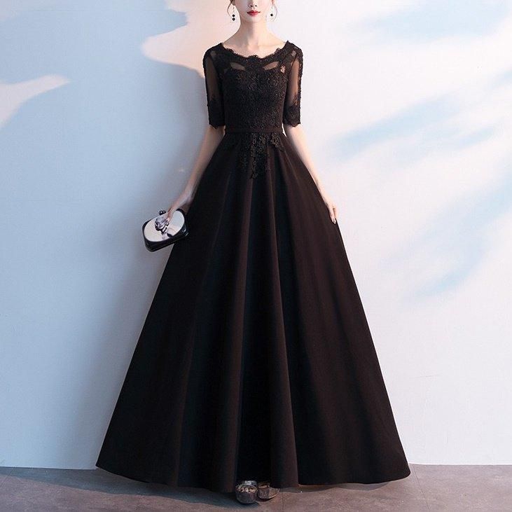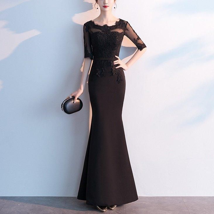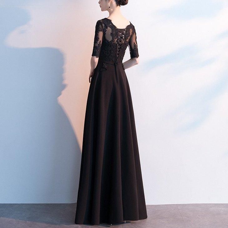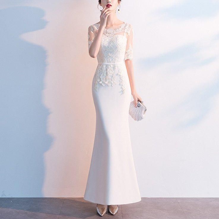 繊細な花柄刺繍がきれいなロングパーティードレス。
