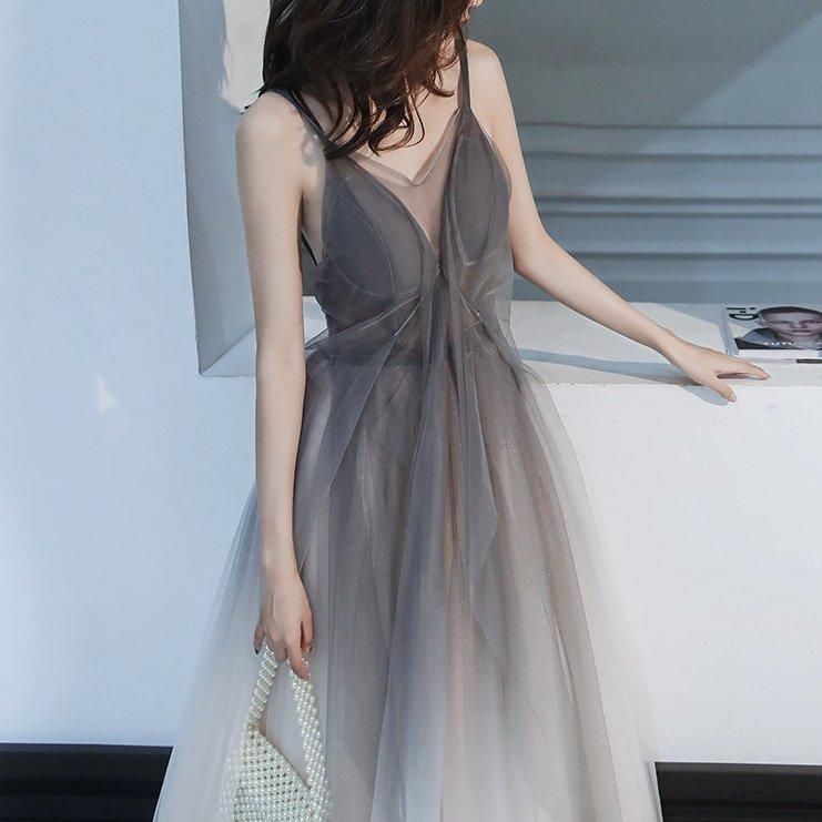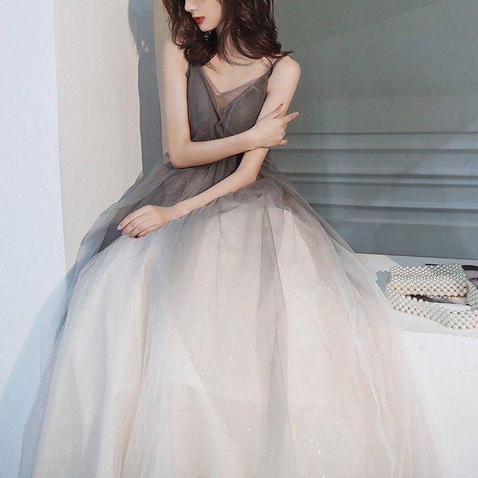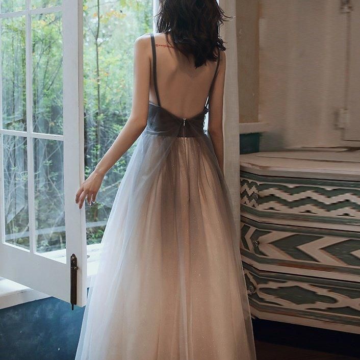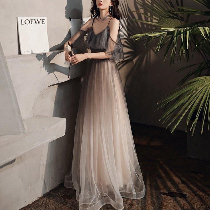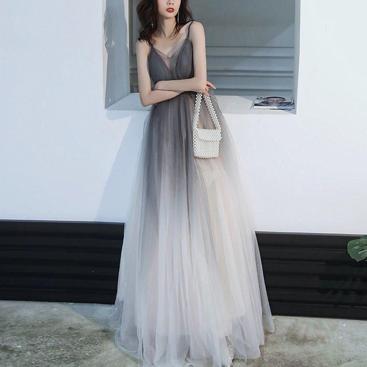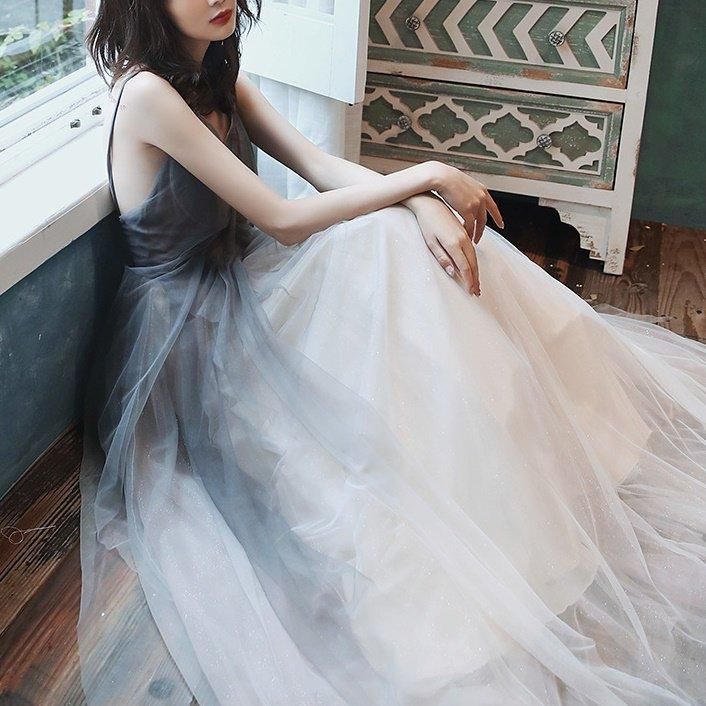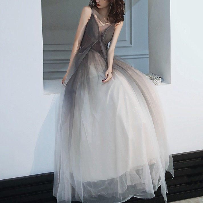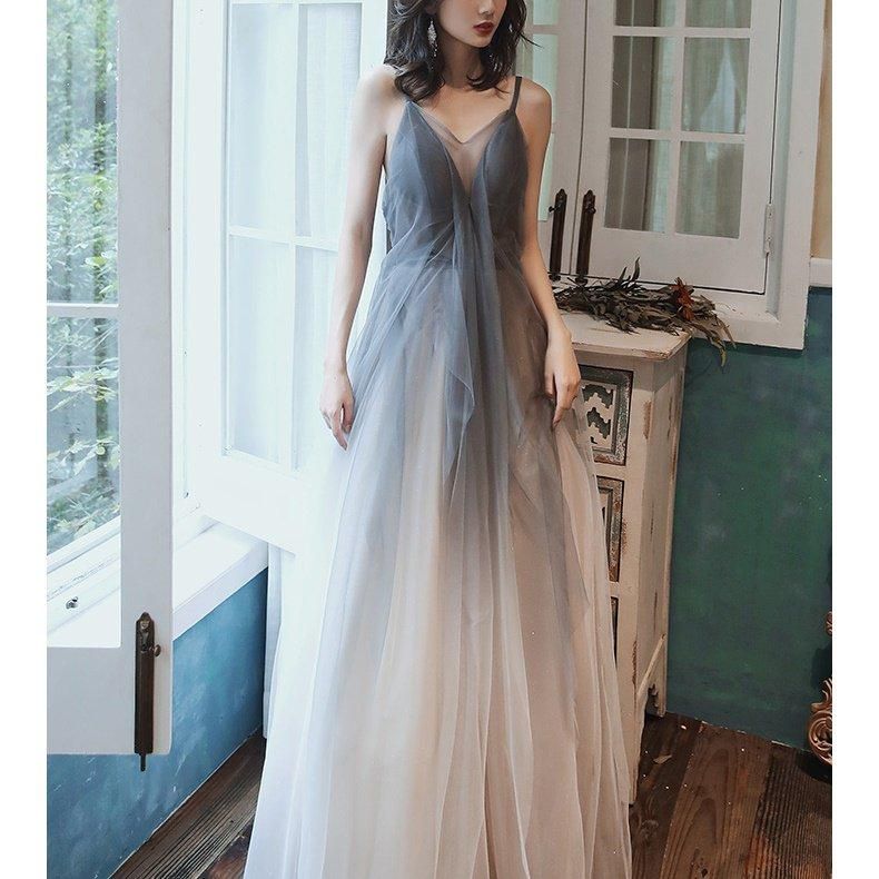 グラデーションカラーが魅力のキャミソールロングドレス。