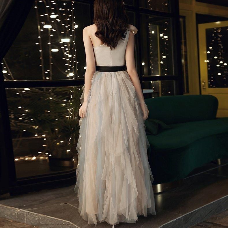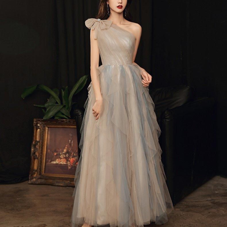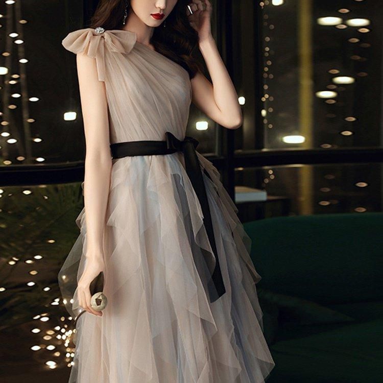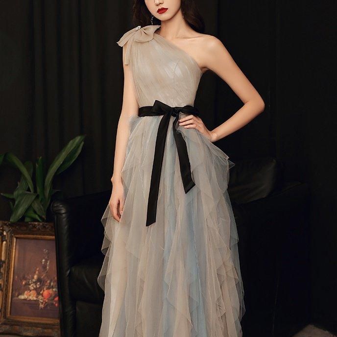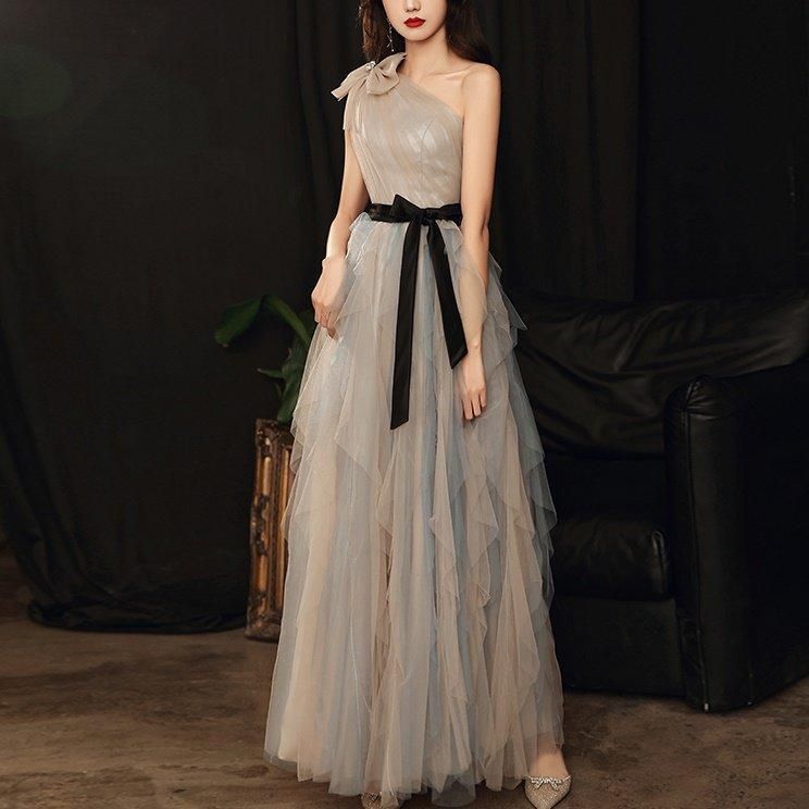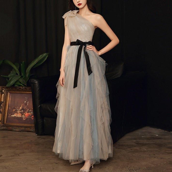 肩やデコルテがきれいに出るワンショルダー。