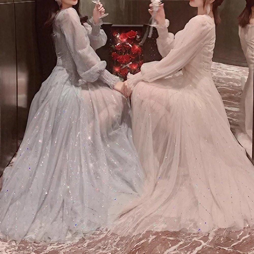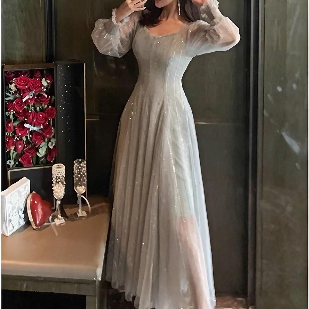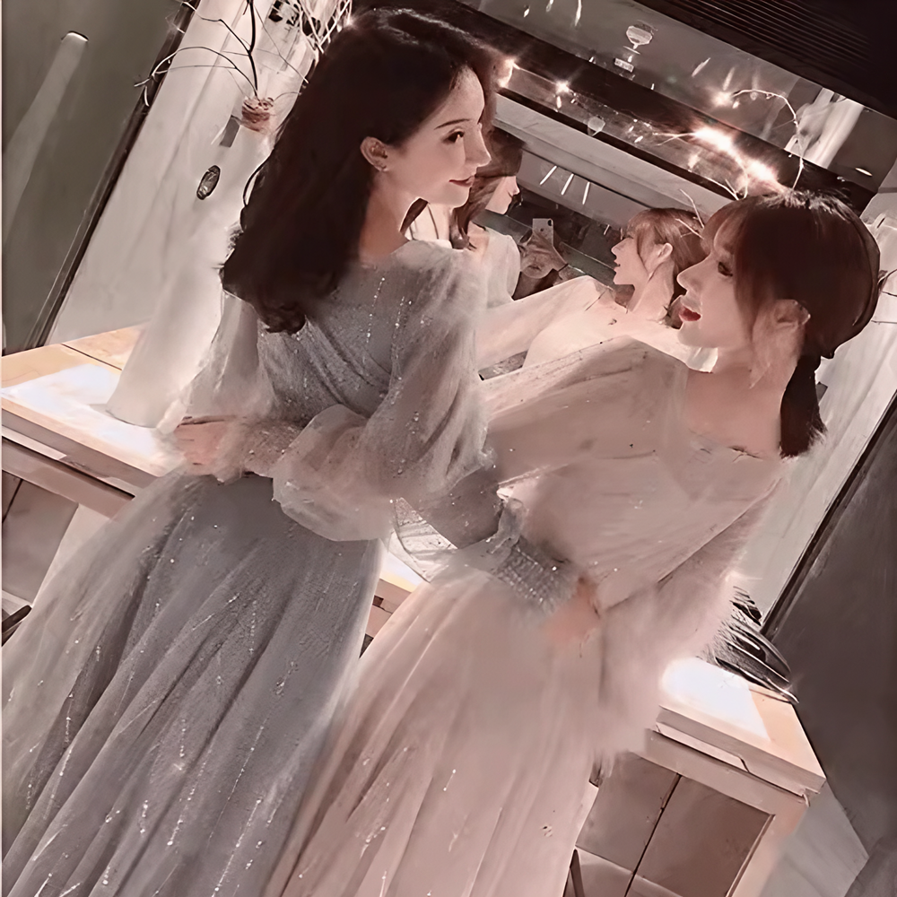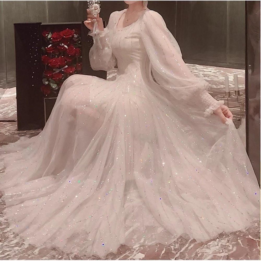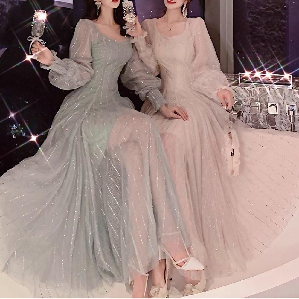 動く度にふわっと広がるスカートが華やかンAラインロングドレス。