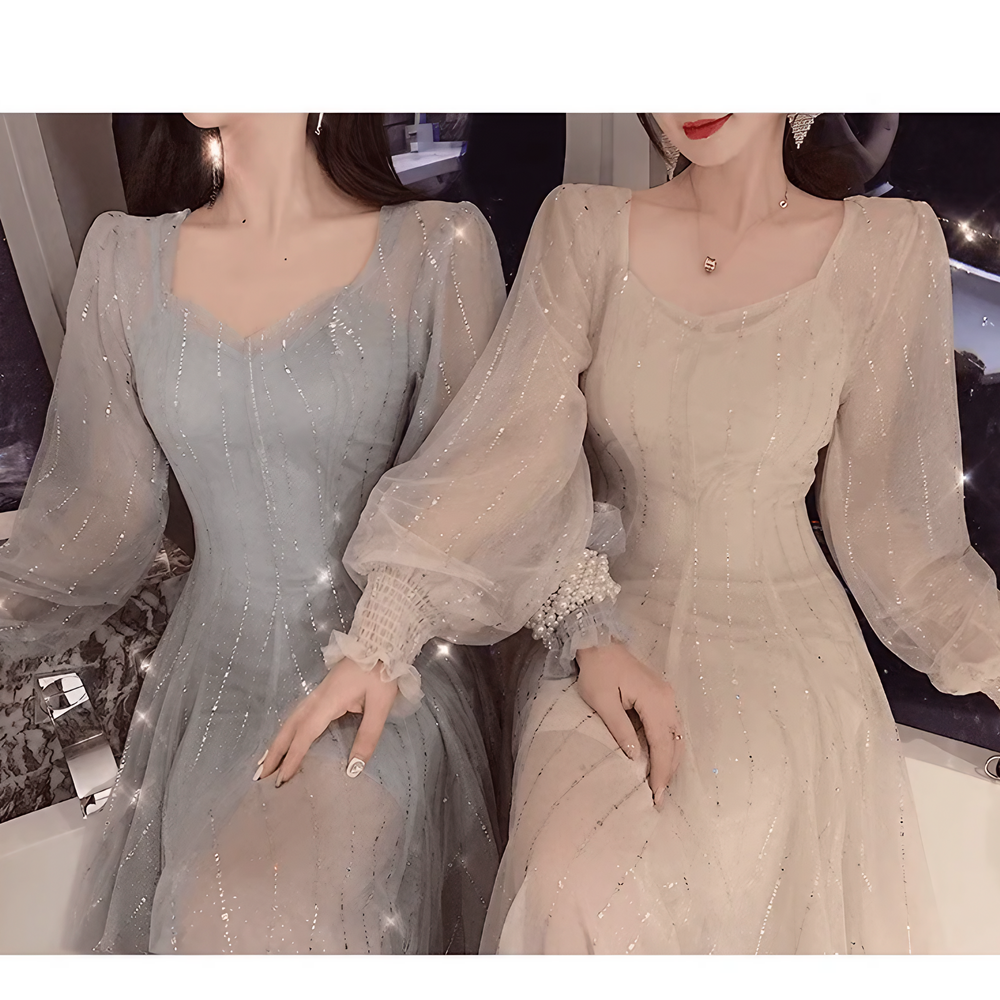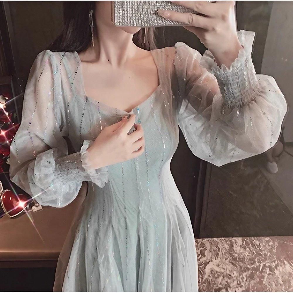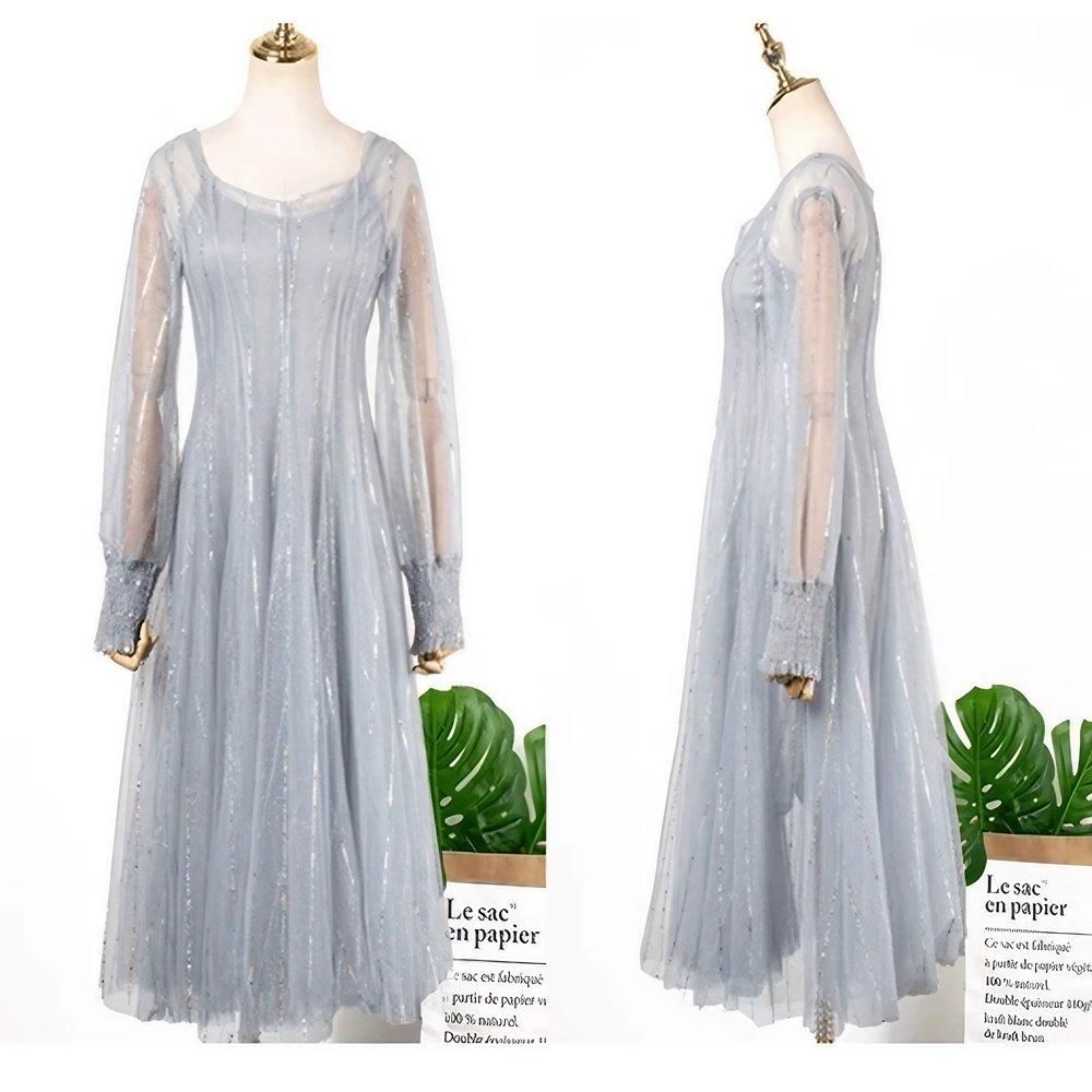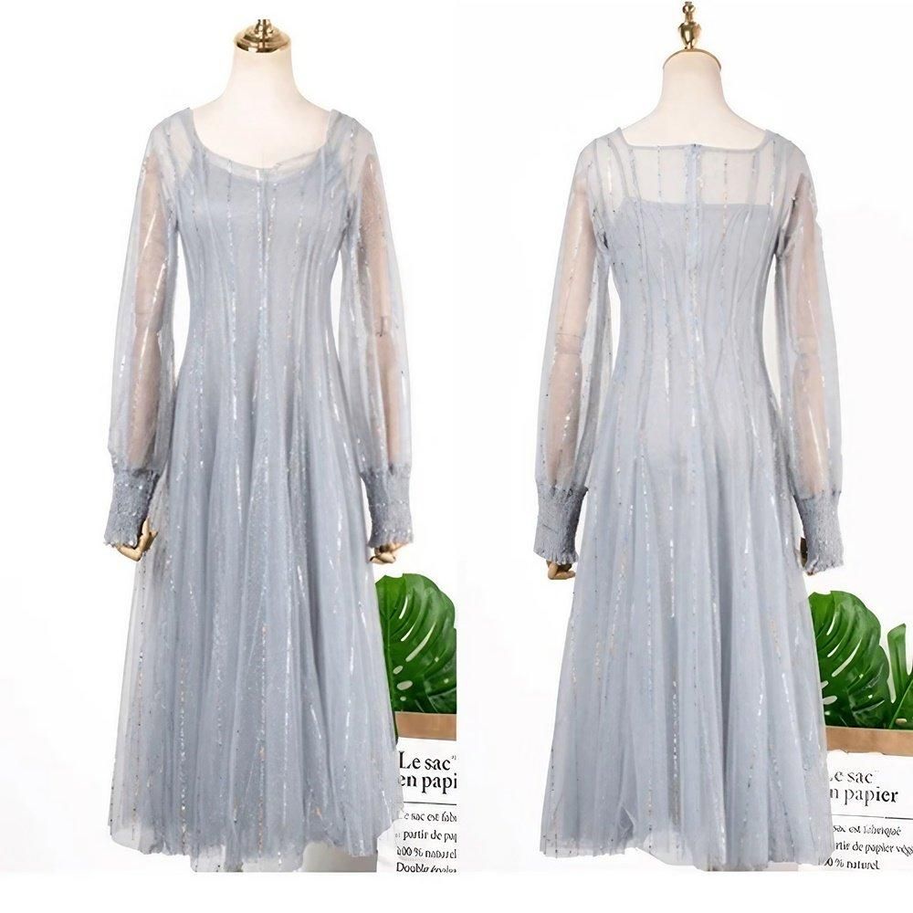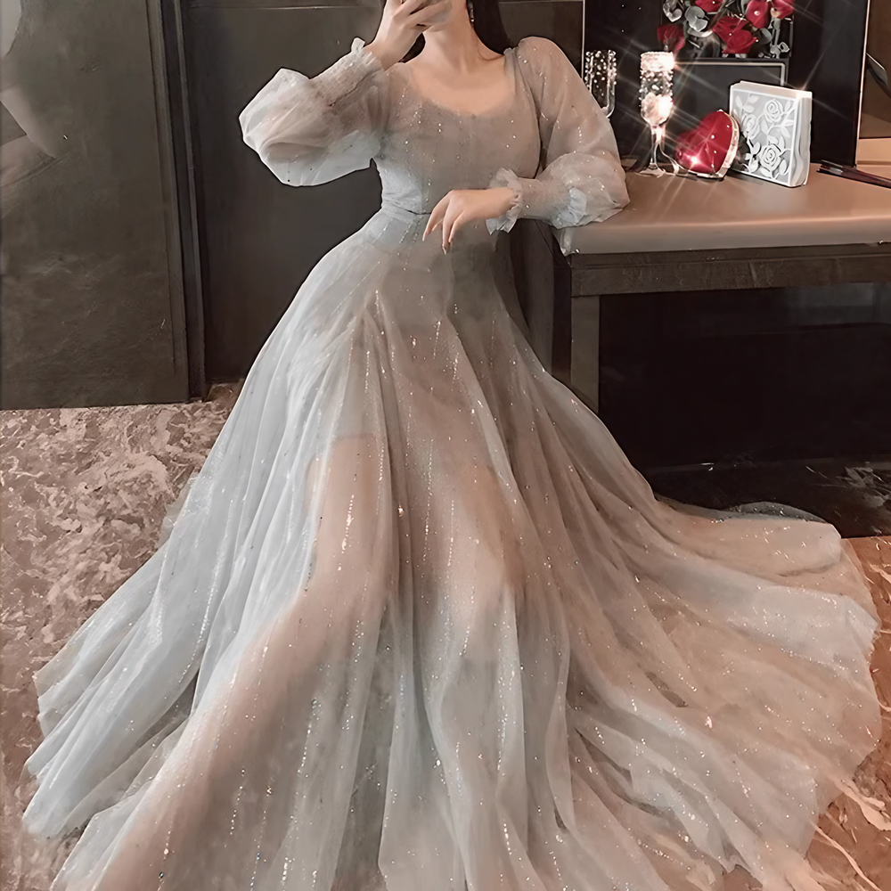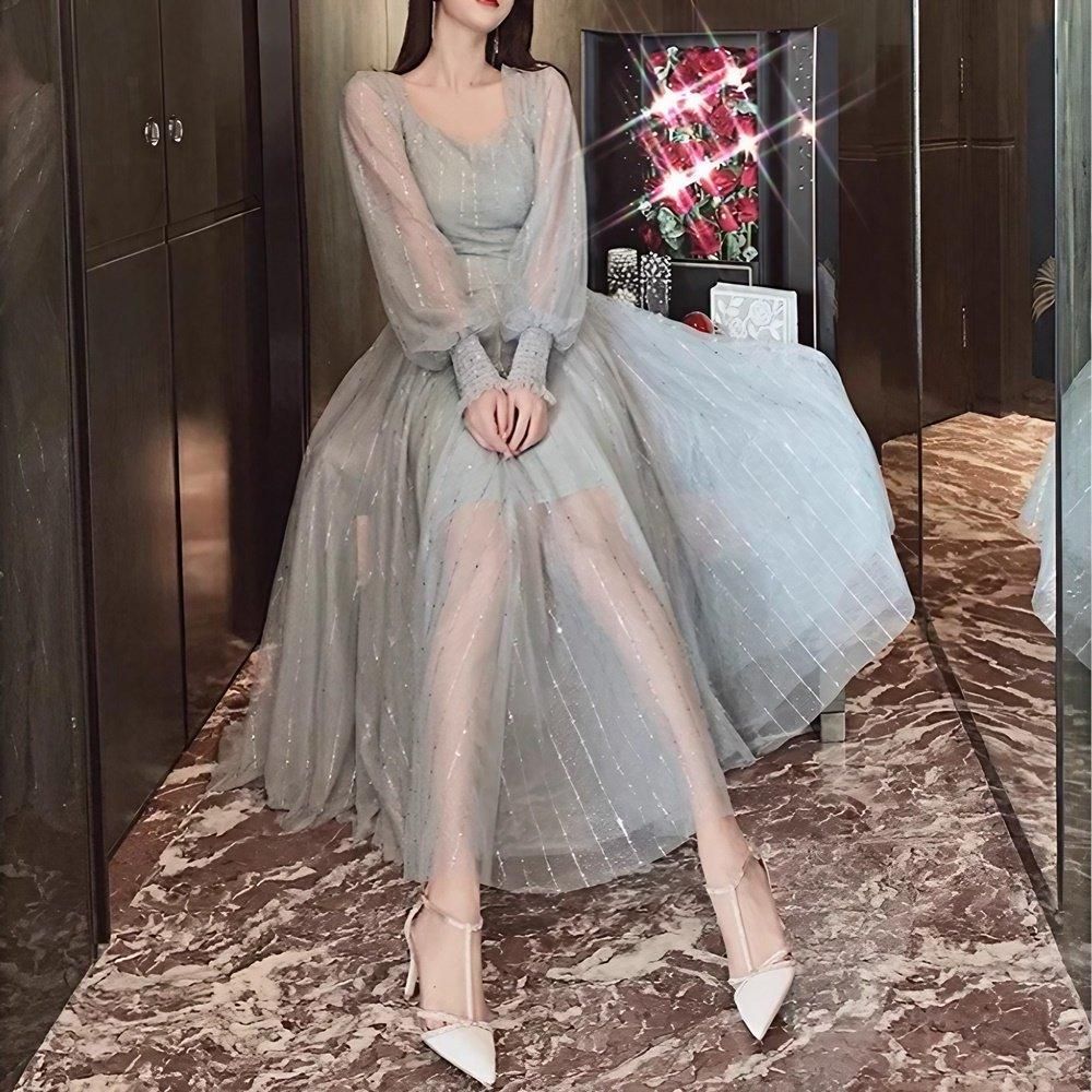 動く度にふわっと広がるスカートが華やかンAラインロングドレス。