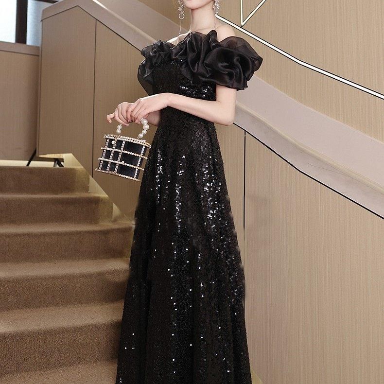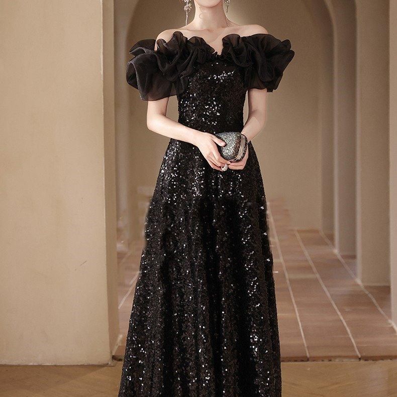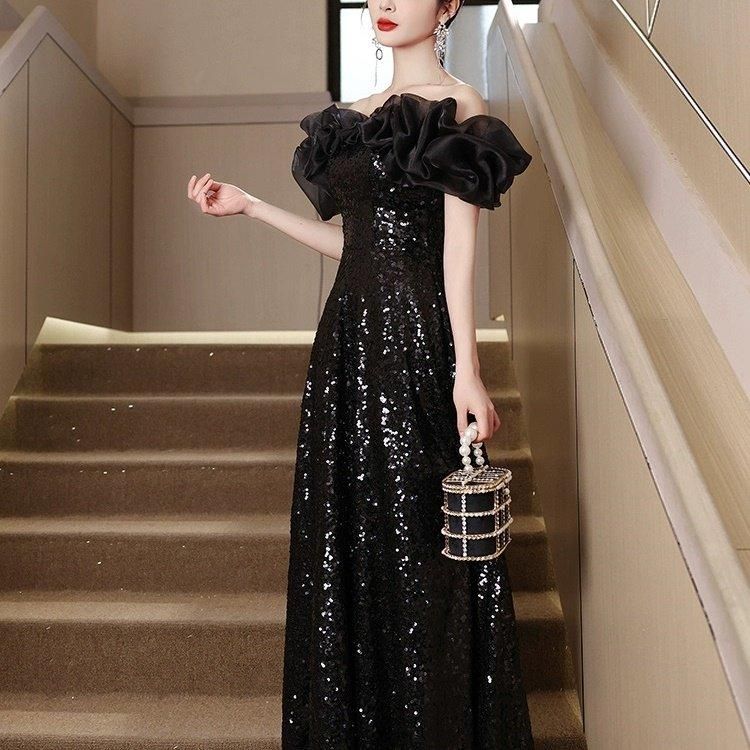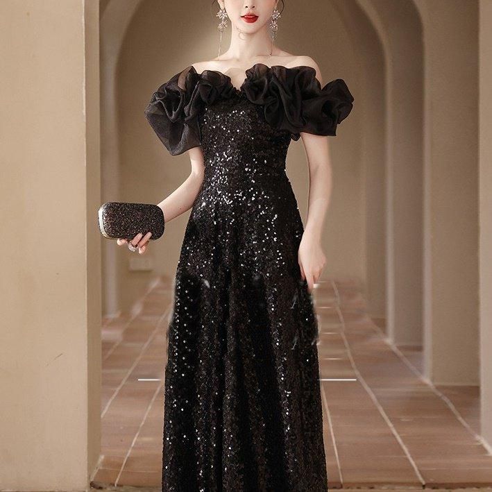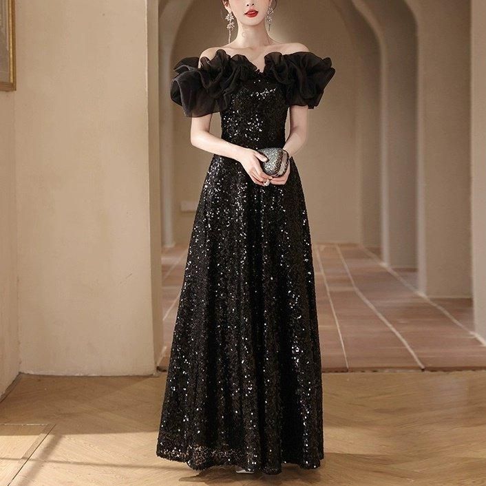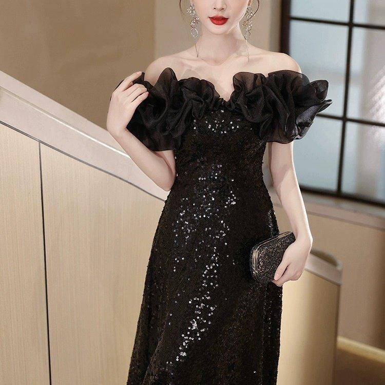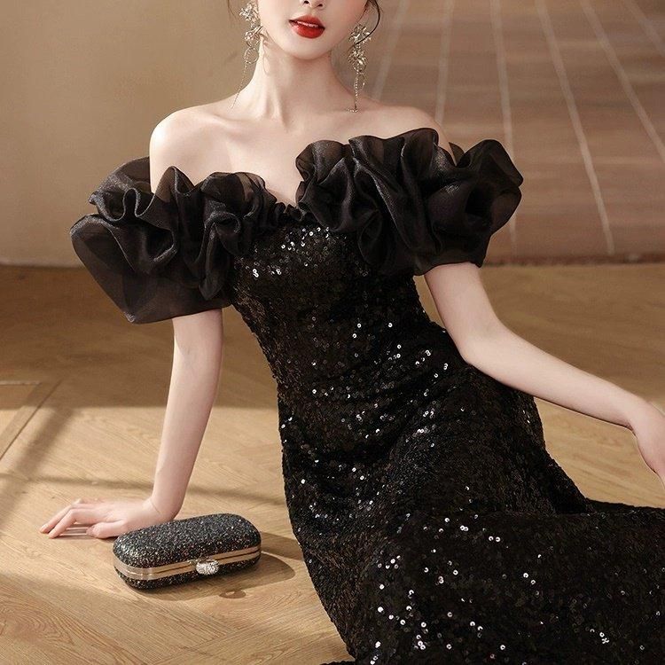 背中はすっきりと肩が出て大人の雰囲気を演出します。