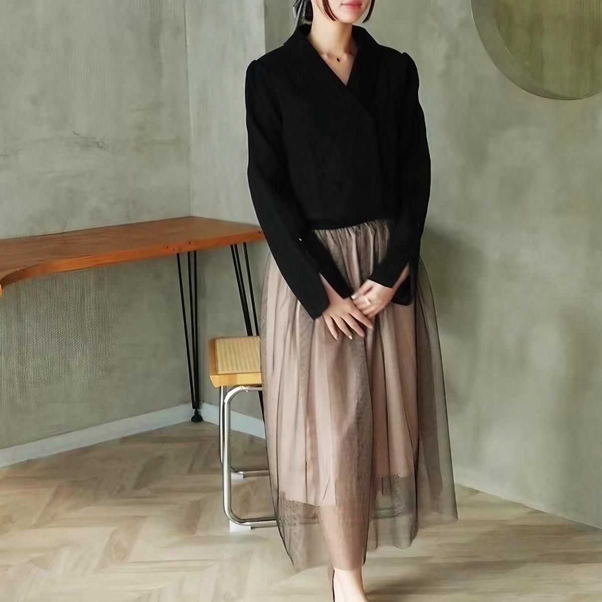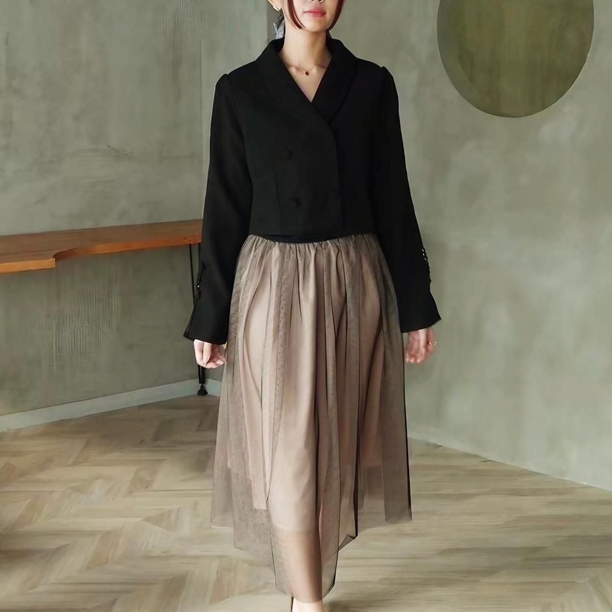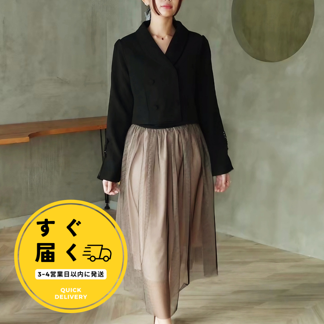【即納商品】ドレス セットアップ ジャケット ショート丈 Vネック チュール Aライン ロングスカート お呼ばれ お出かけ