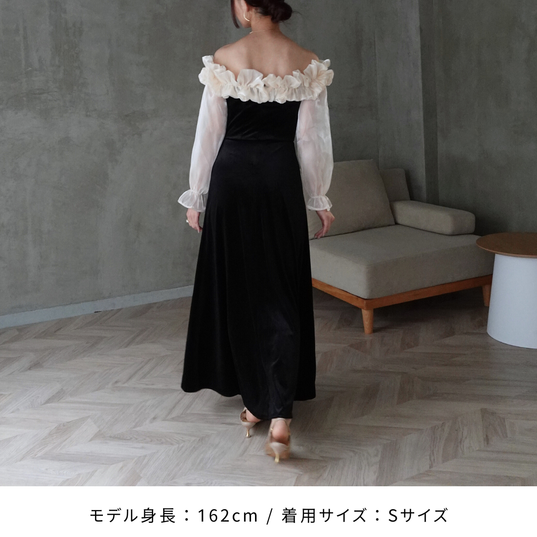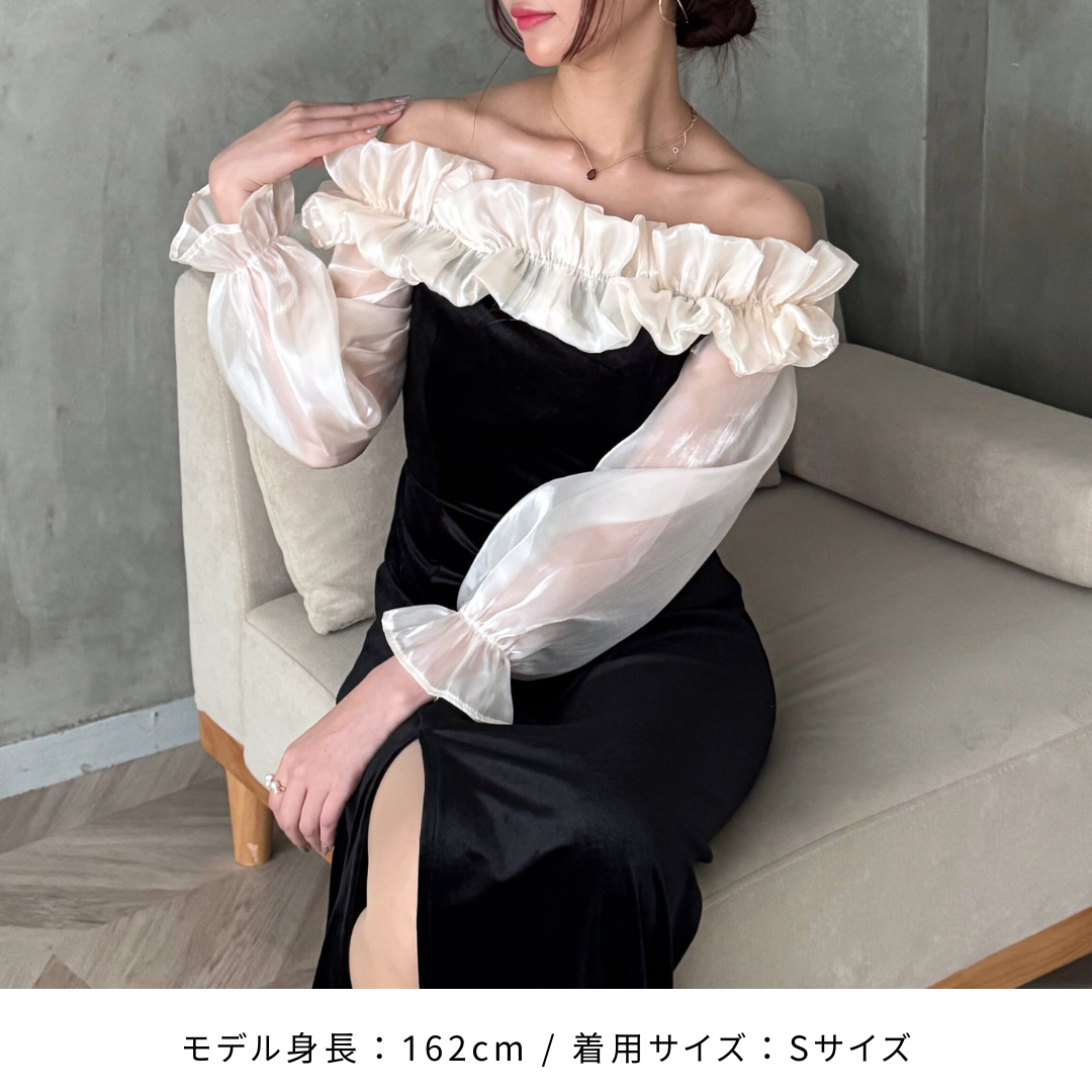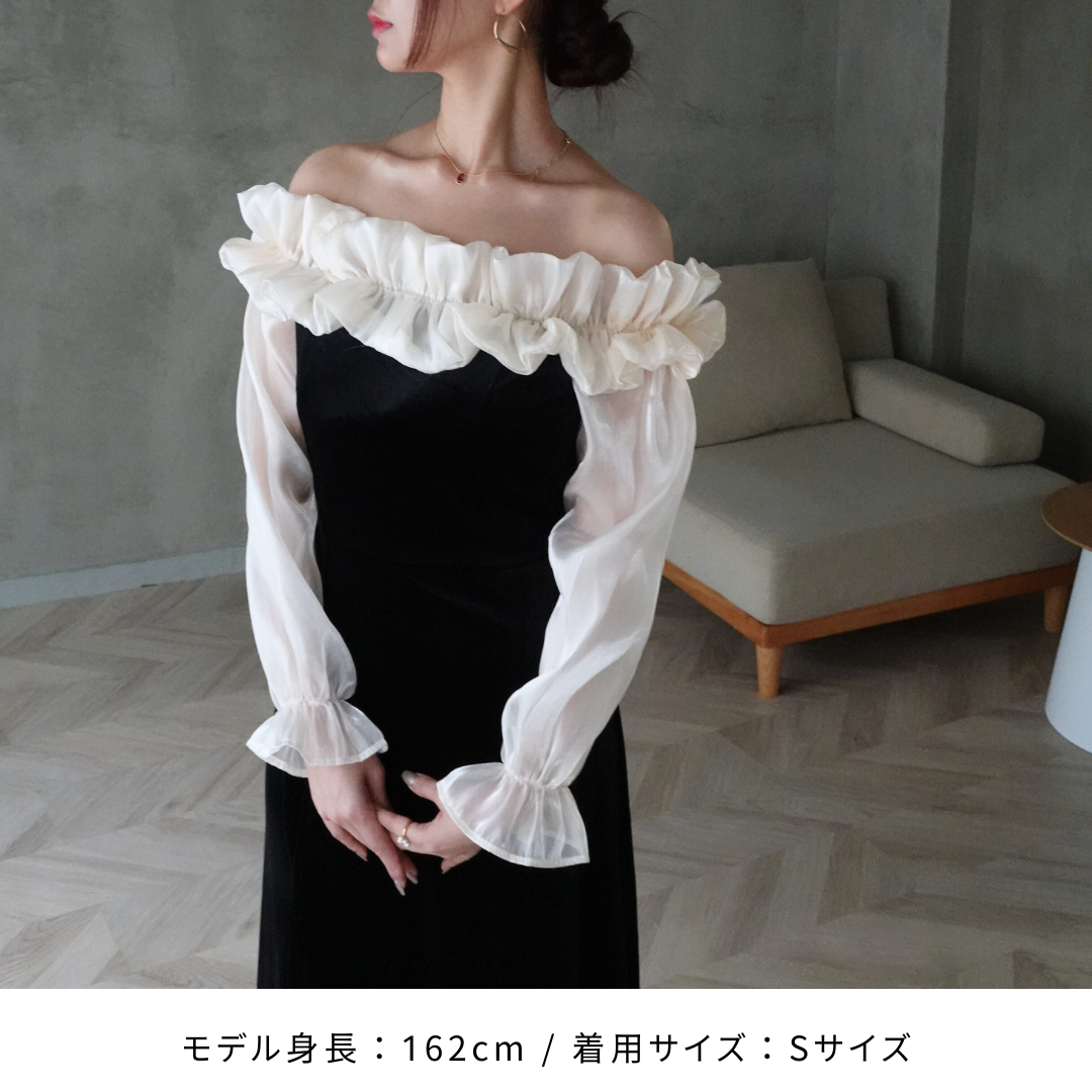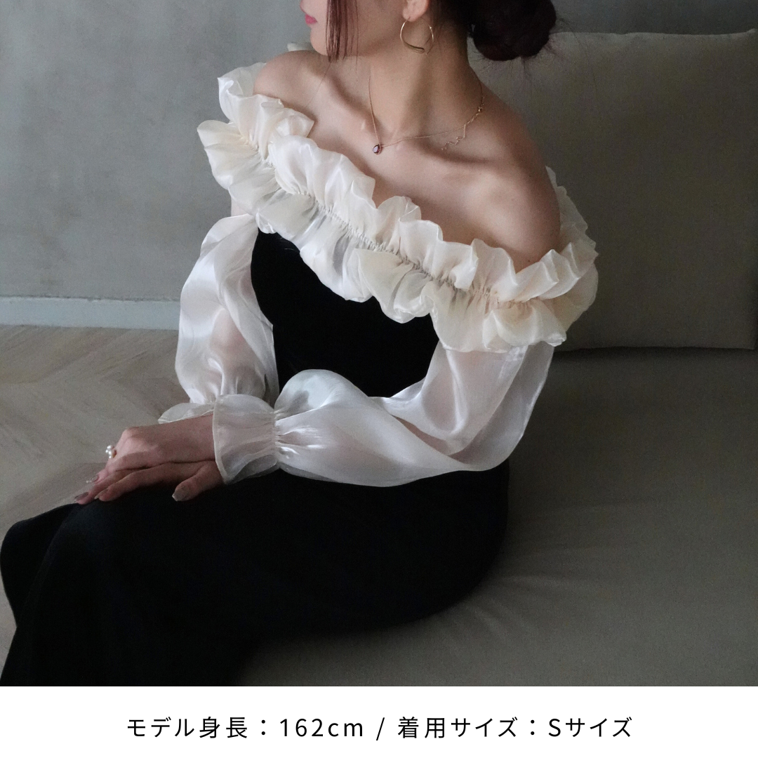胸元のフリルが顔まわりを華やかに見せてくれます。