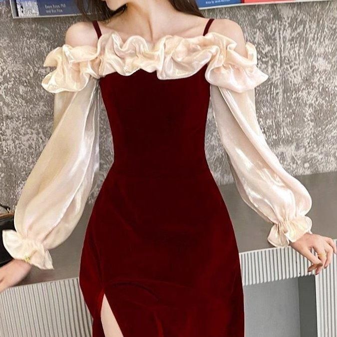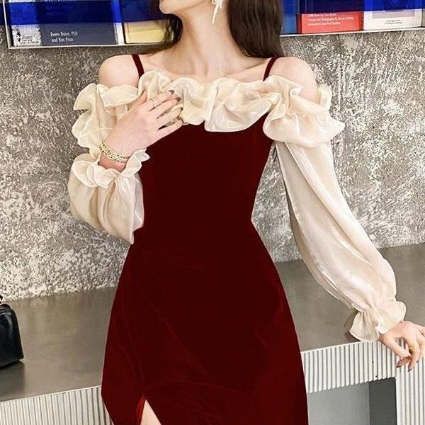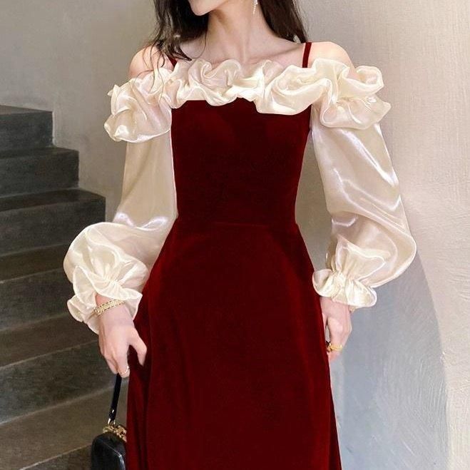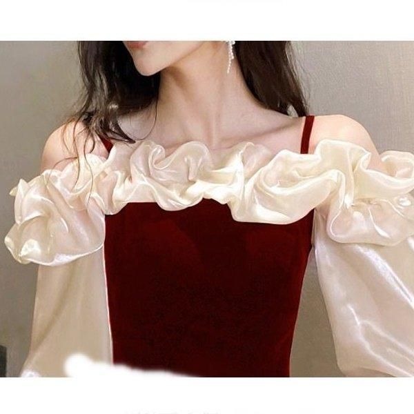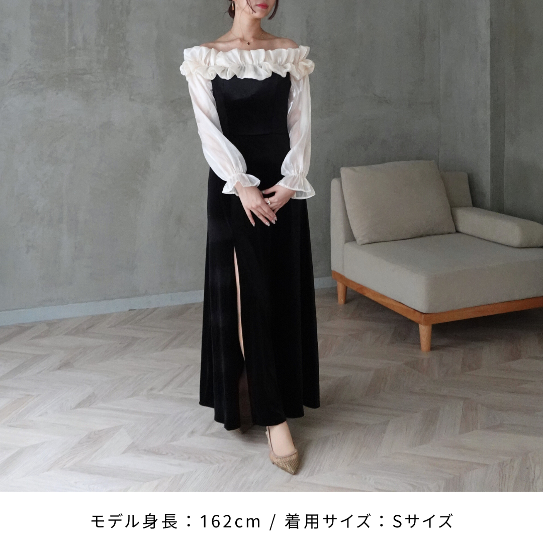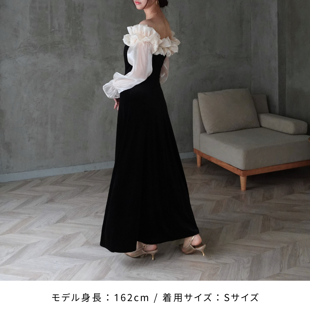 胸元のフリルが顔まわりを華やかに見せてくれます。