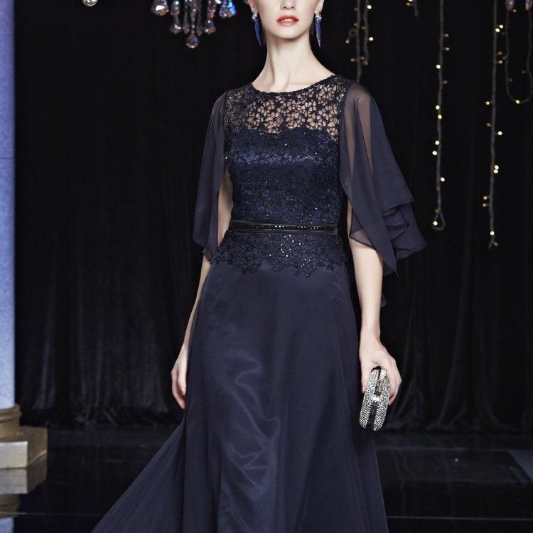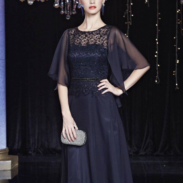 シックで落ち着いた佇まいが魅力のロングドレス。