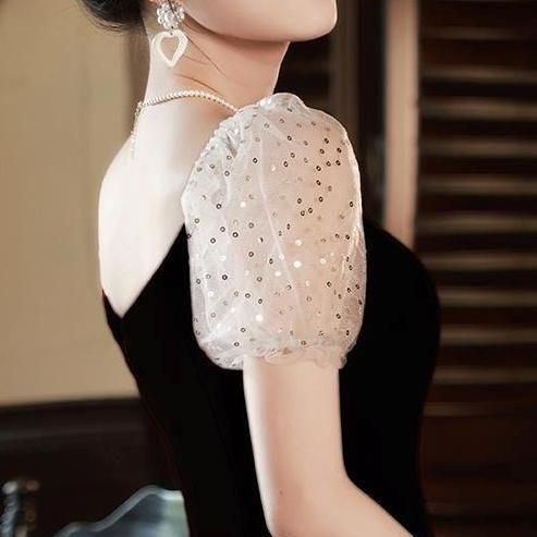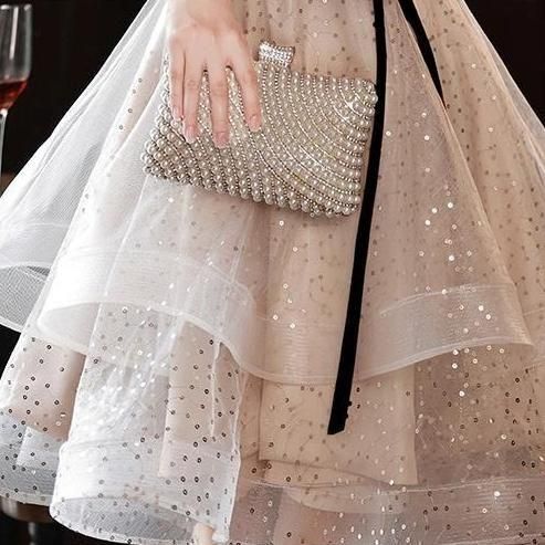 スパンコールが動くたびに輝く、華やかな印象のドレスです。