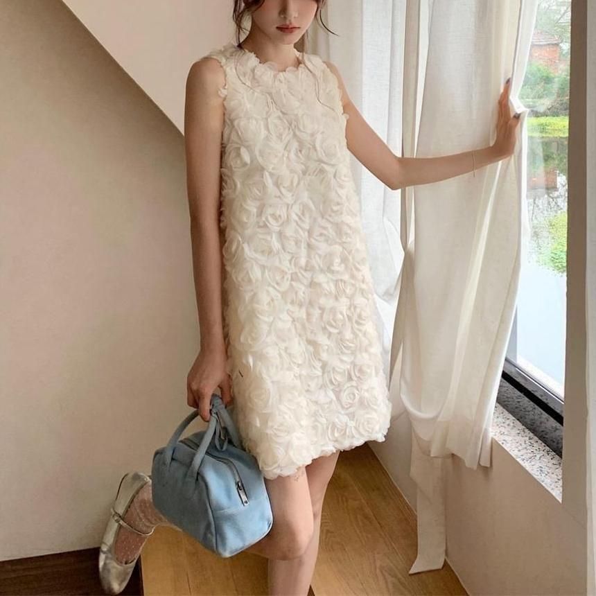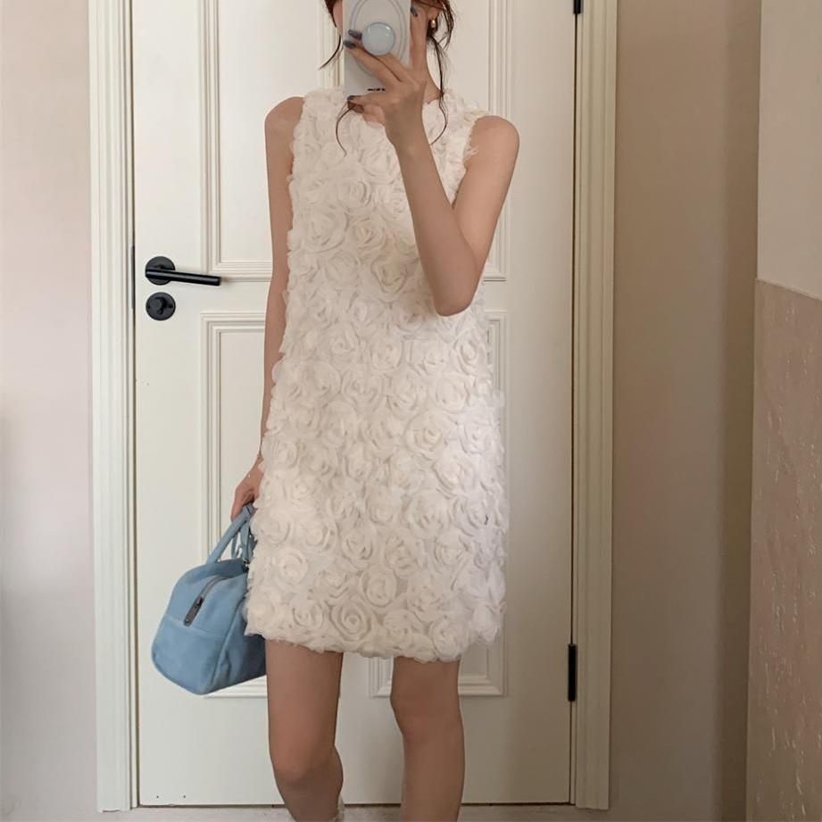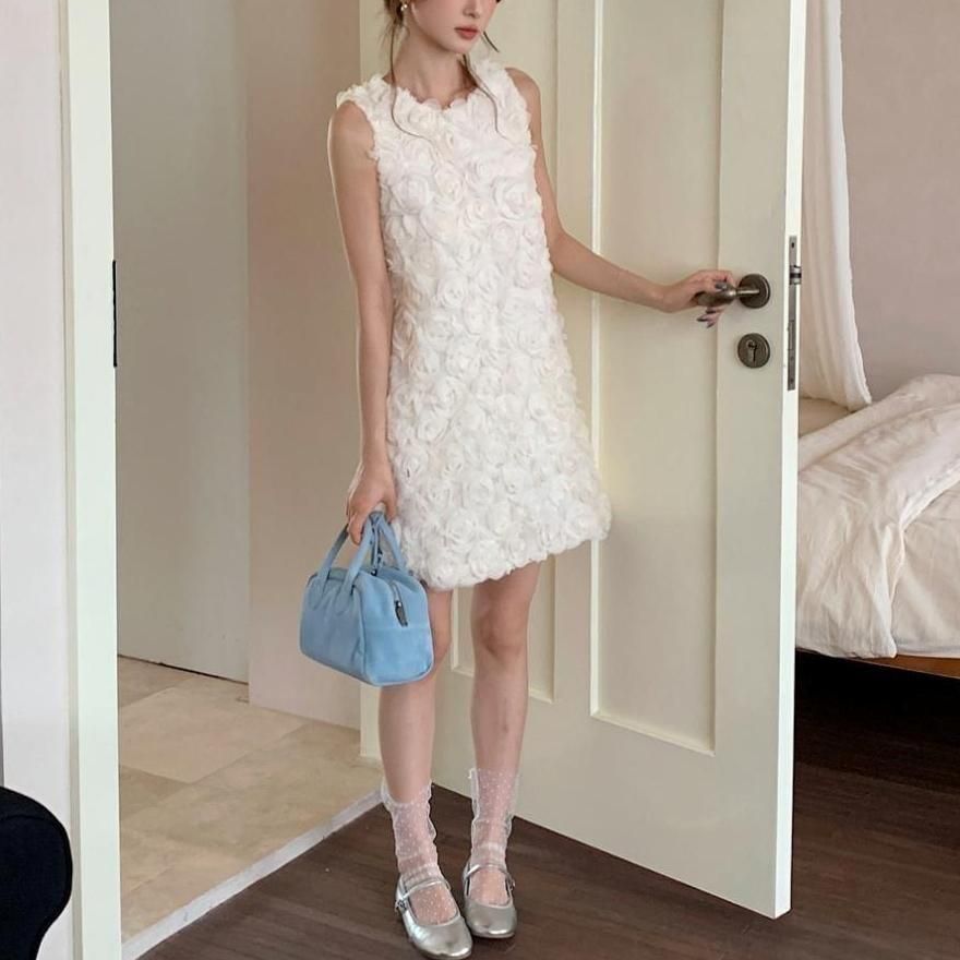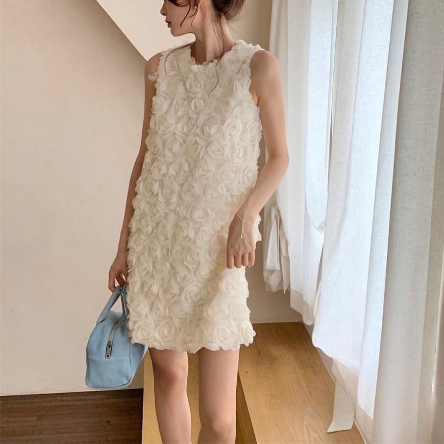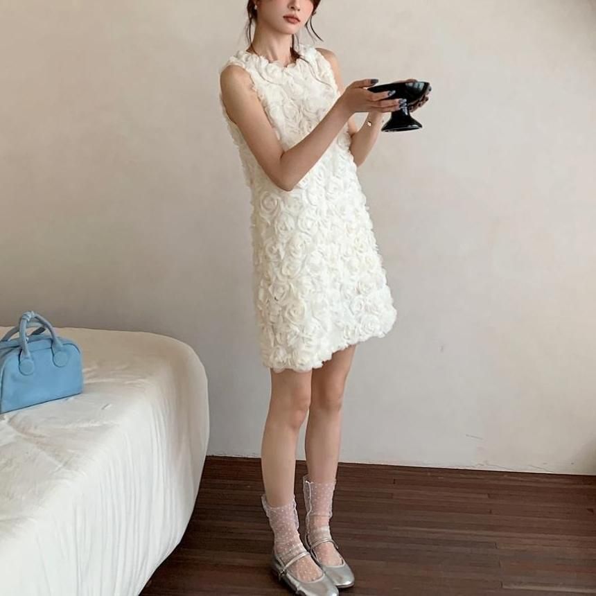 立体感のあるフラワーモチーフが華やかなショート丈ドレス。