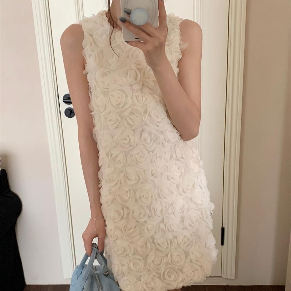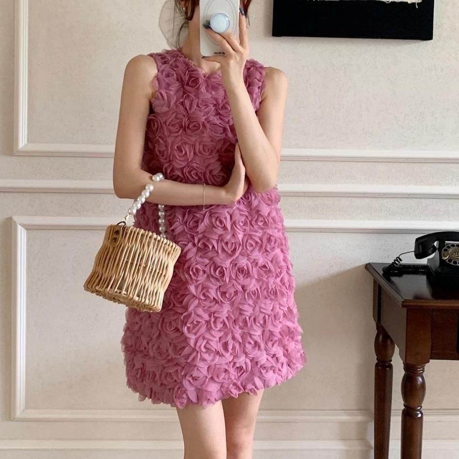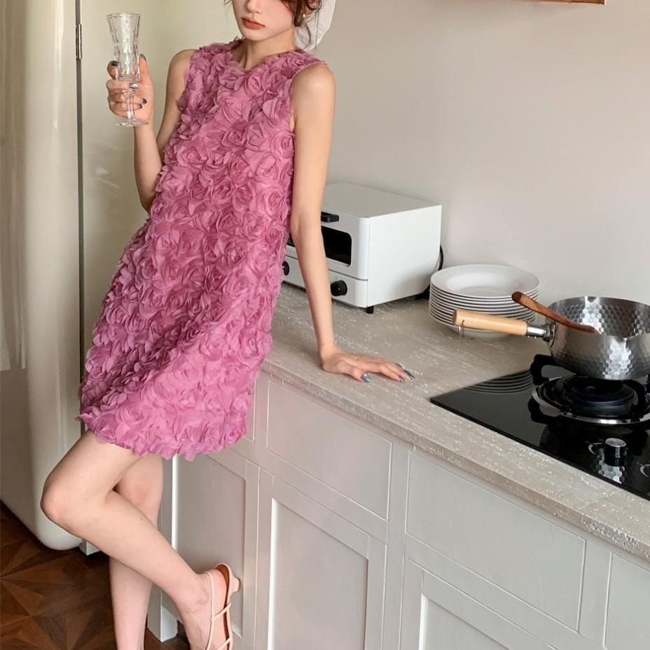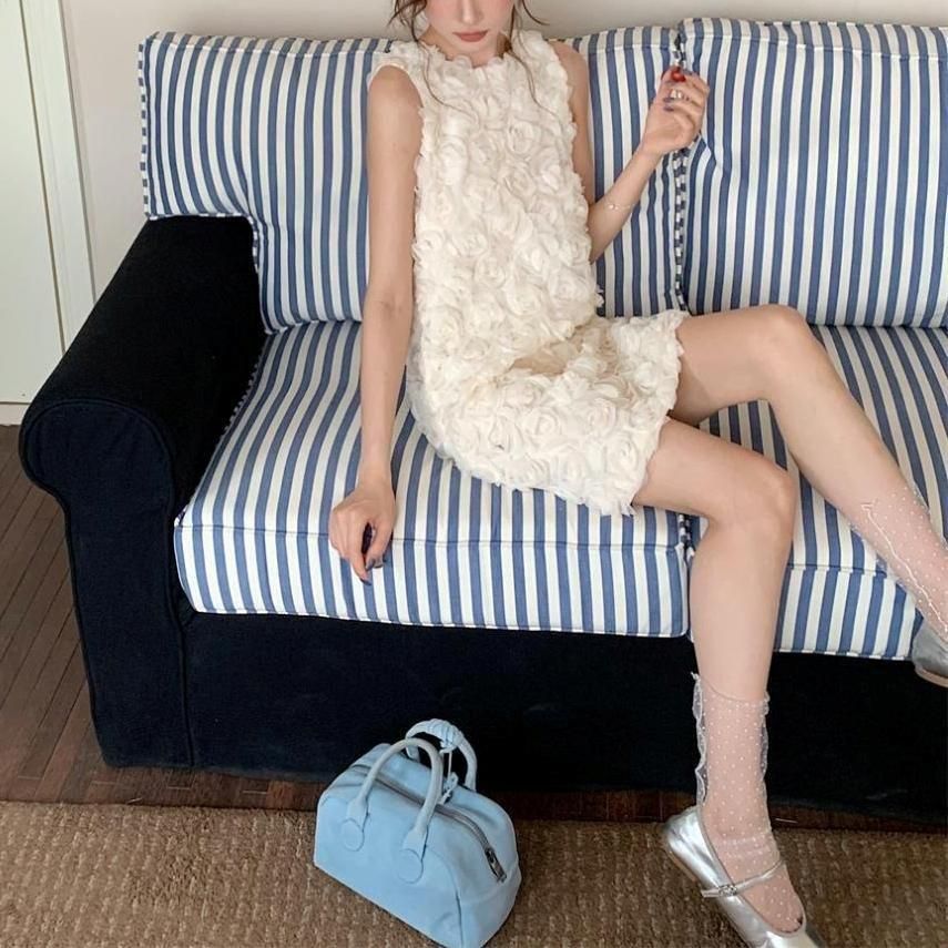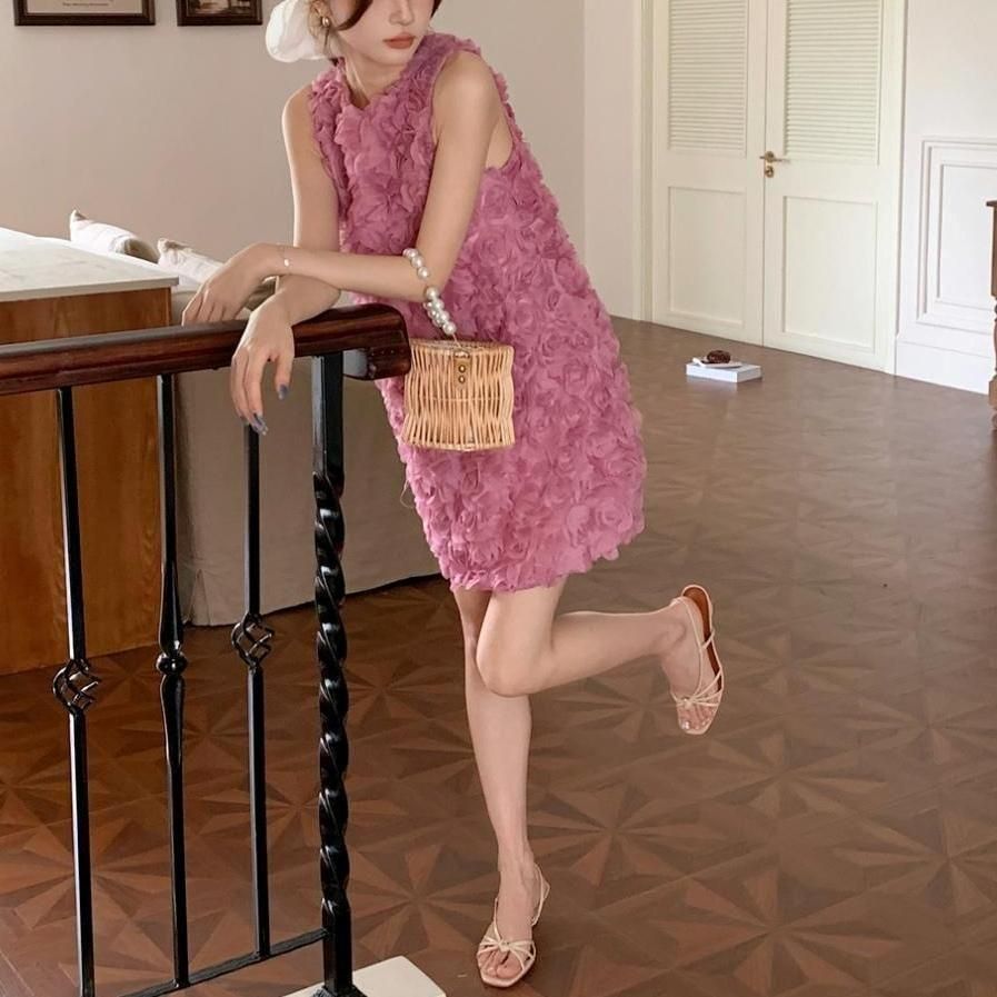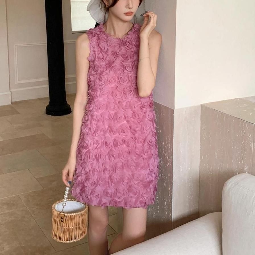 立体感のあるフラワーモチーフが華やかなショート丈ドレス。
