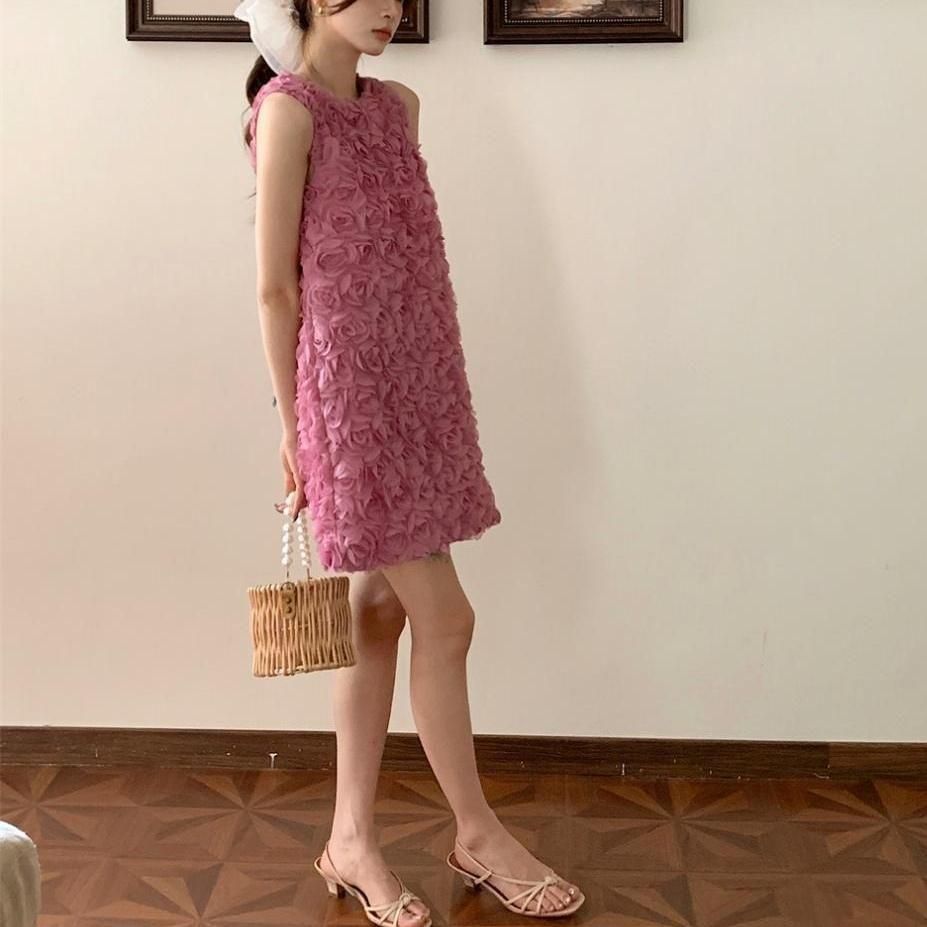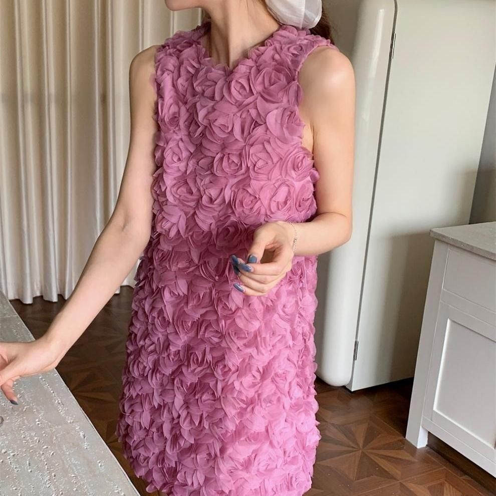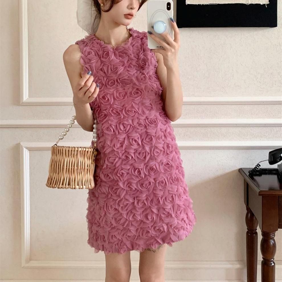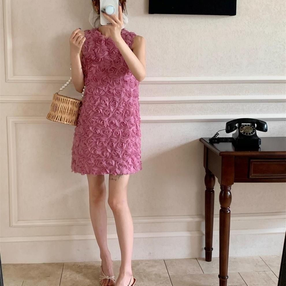 立体感のあるフラワーモチーフが華やかなショート丈ドレス。