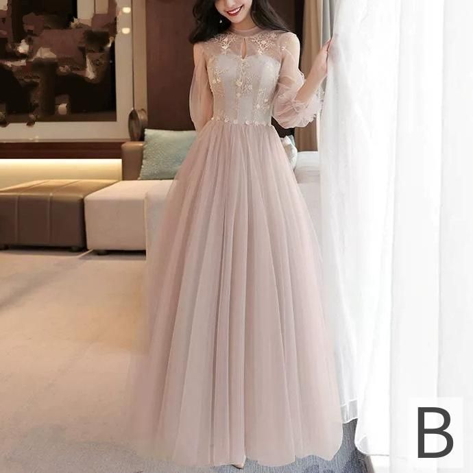 フェミニンなロング・ミディアム丈Aラインドレス。