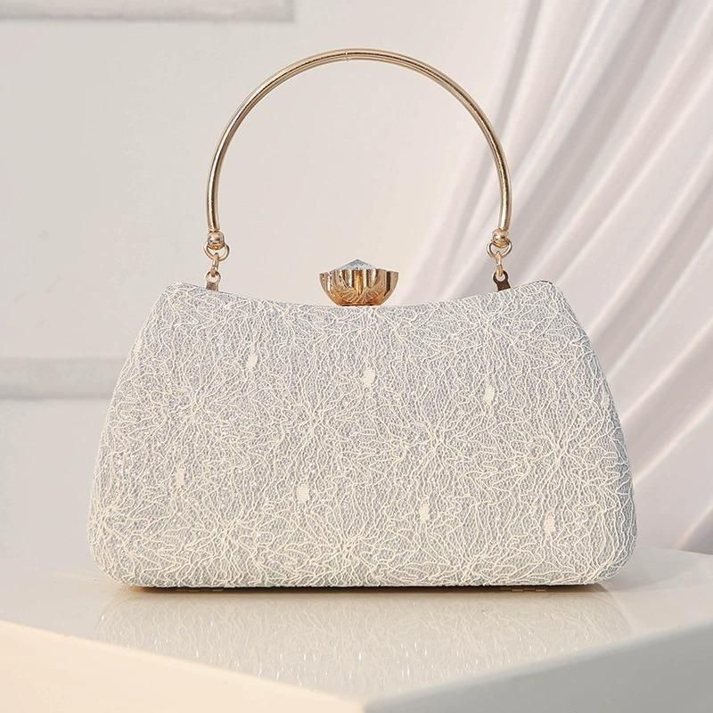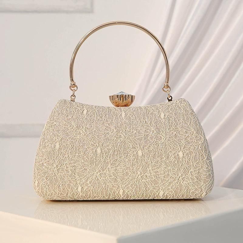 繊細なレースが上品な印象を与えるハンドバッグ。