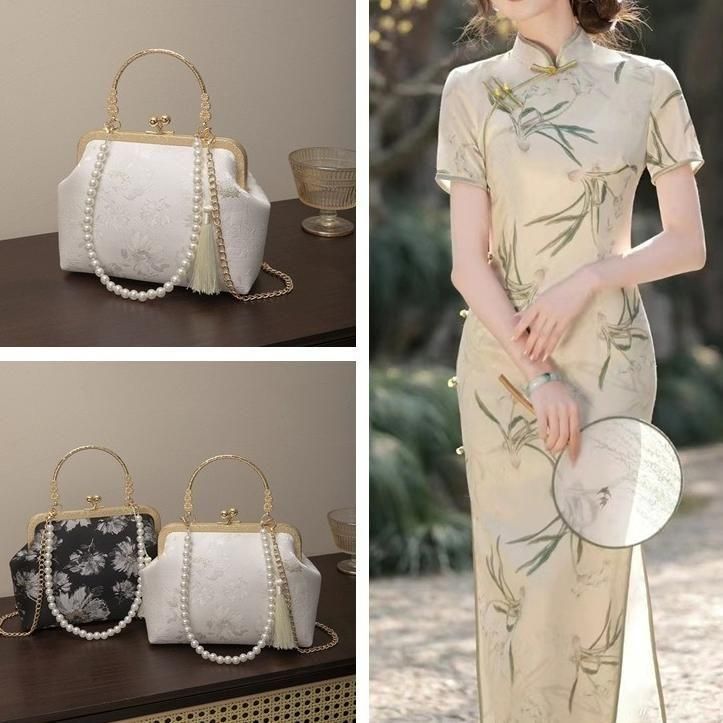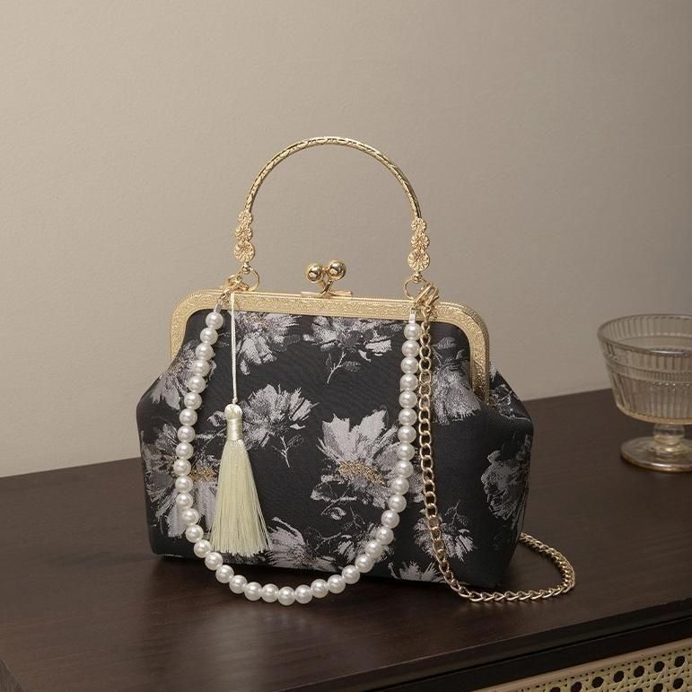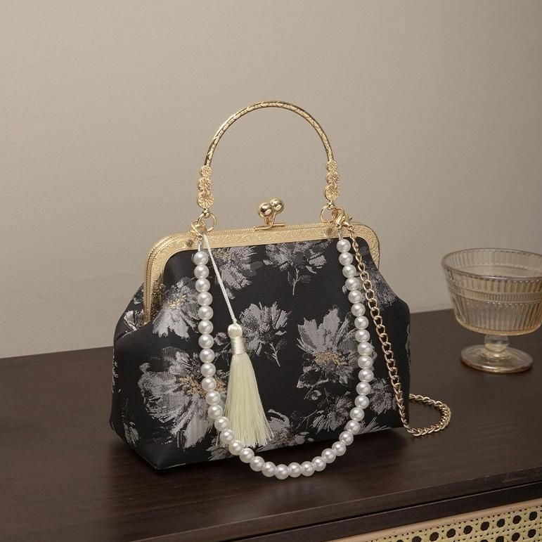 中華風の刺繍やデザインが魅力のハンドバッグ。