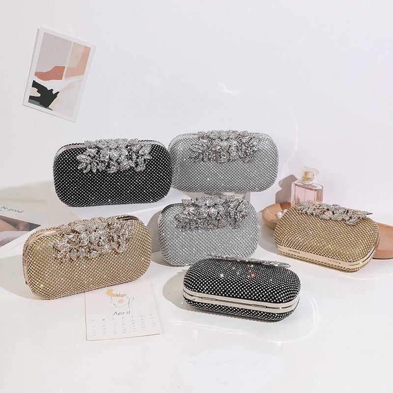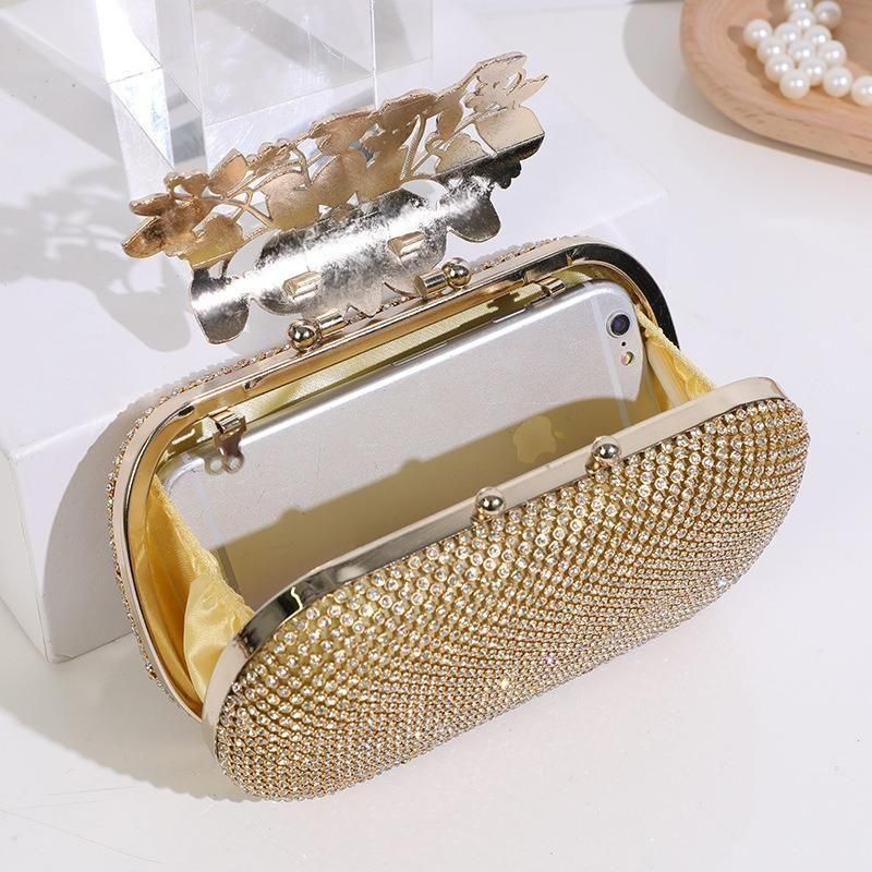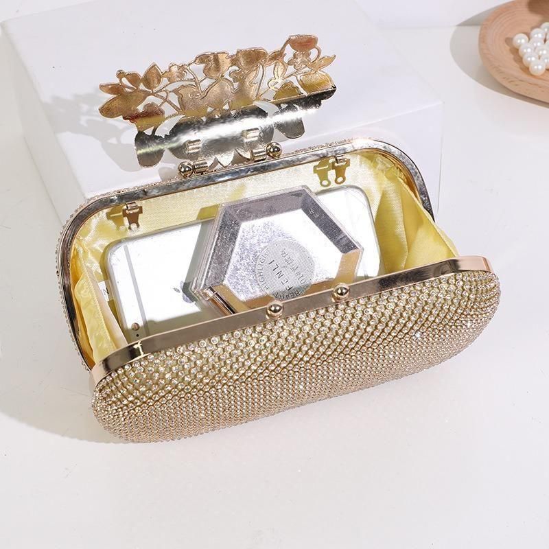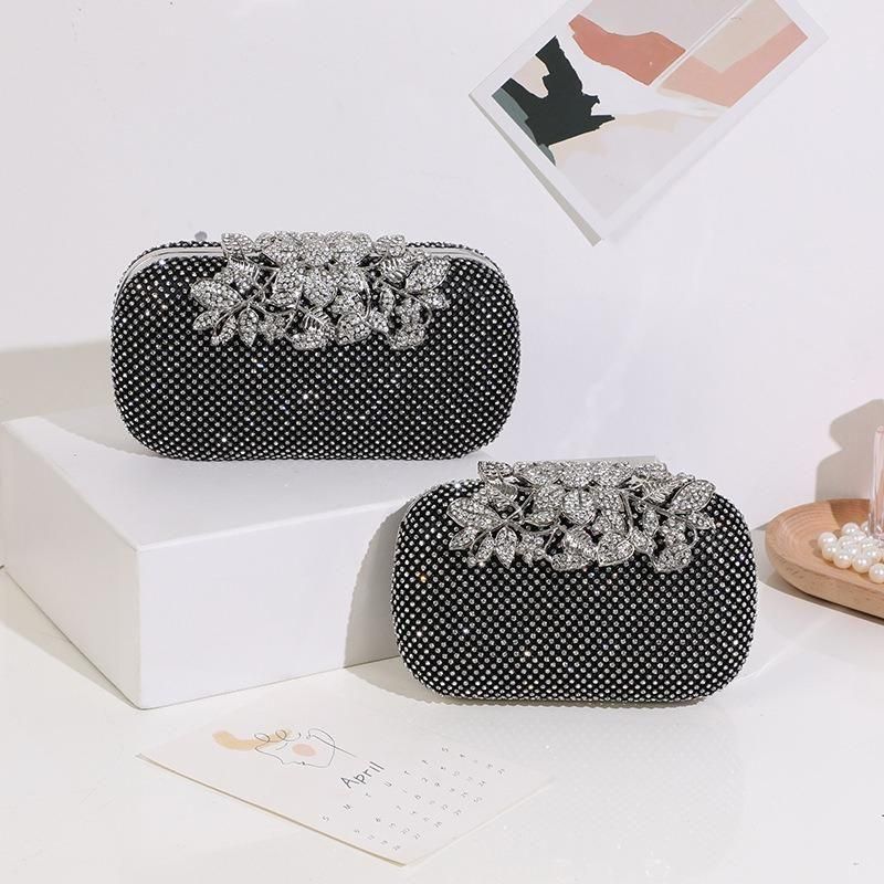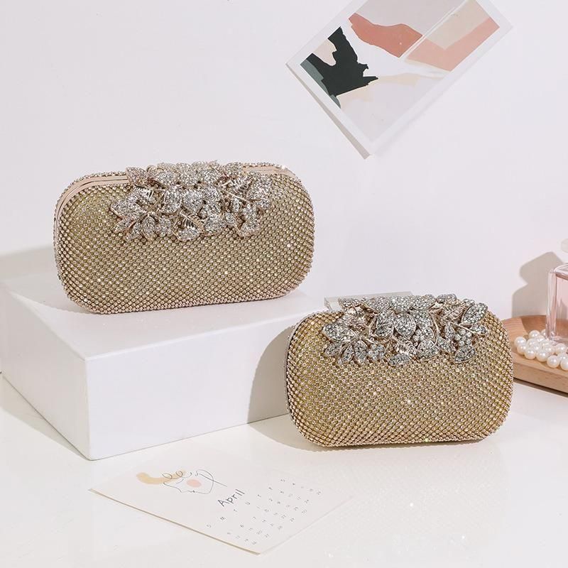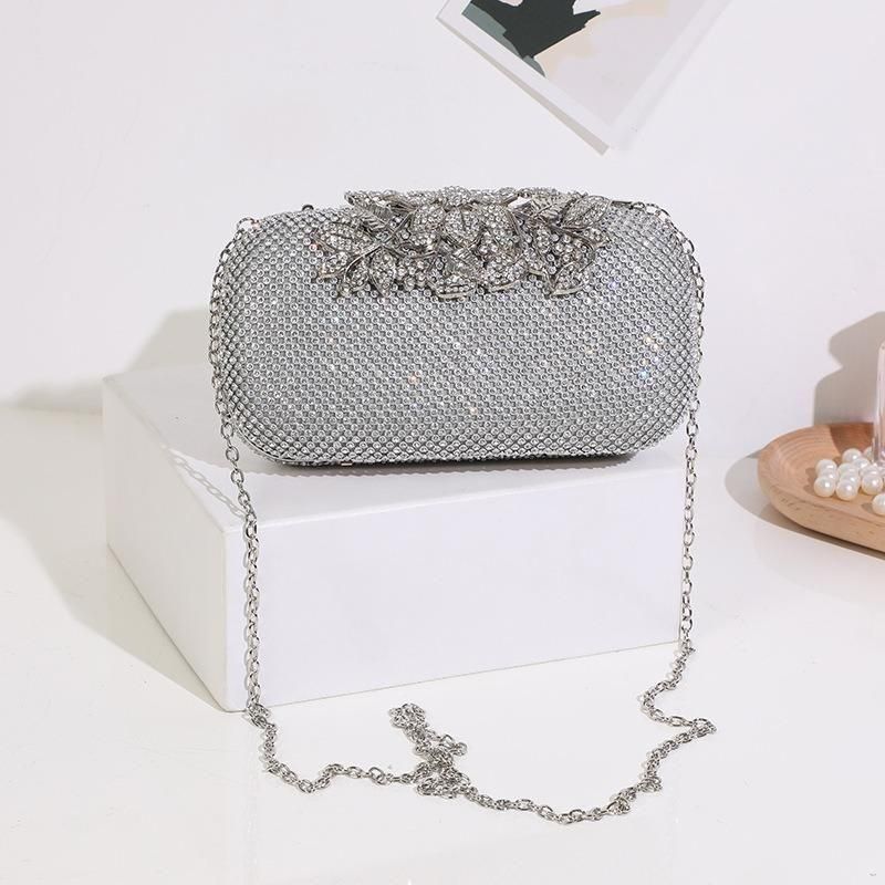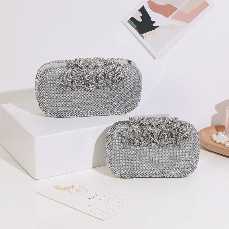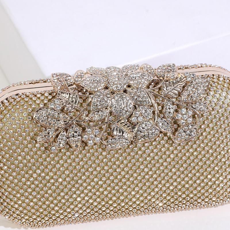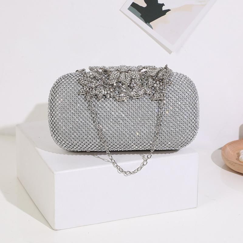 バッグ ラインストーン ビジュー 長方形 クラッチバッグ ハンドバック コンパクト チェーン 華やか ゴージャス 結婚式 二次会 パーティー 3色 2種