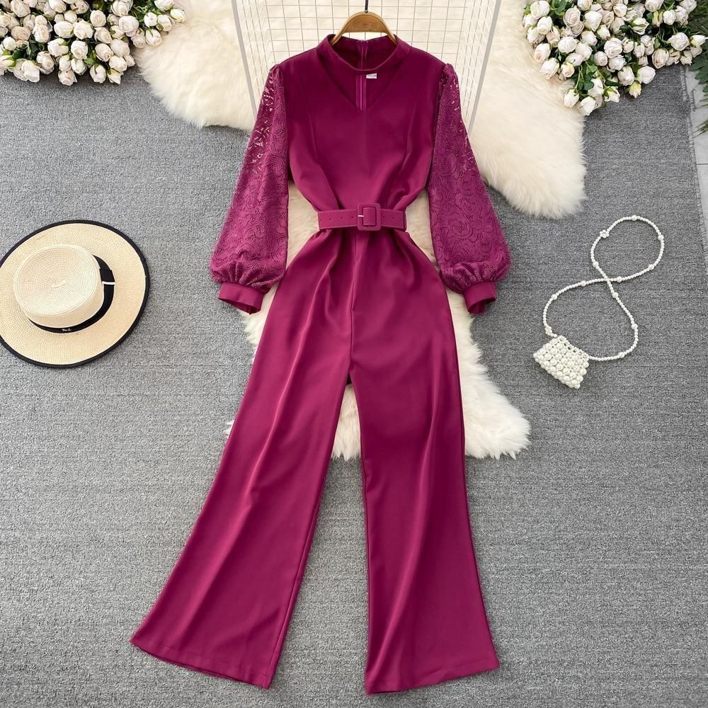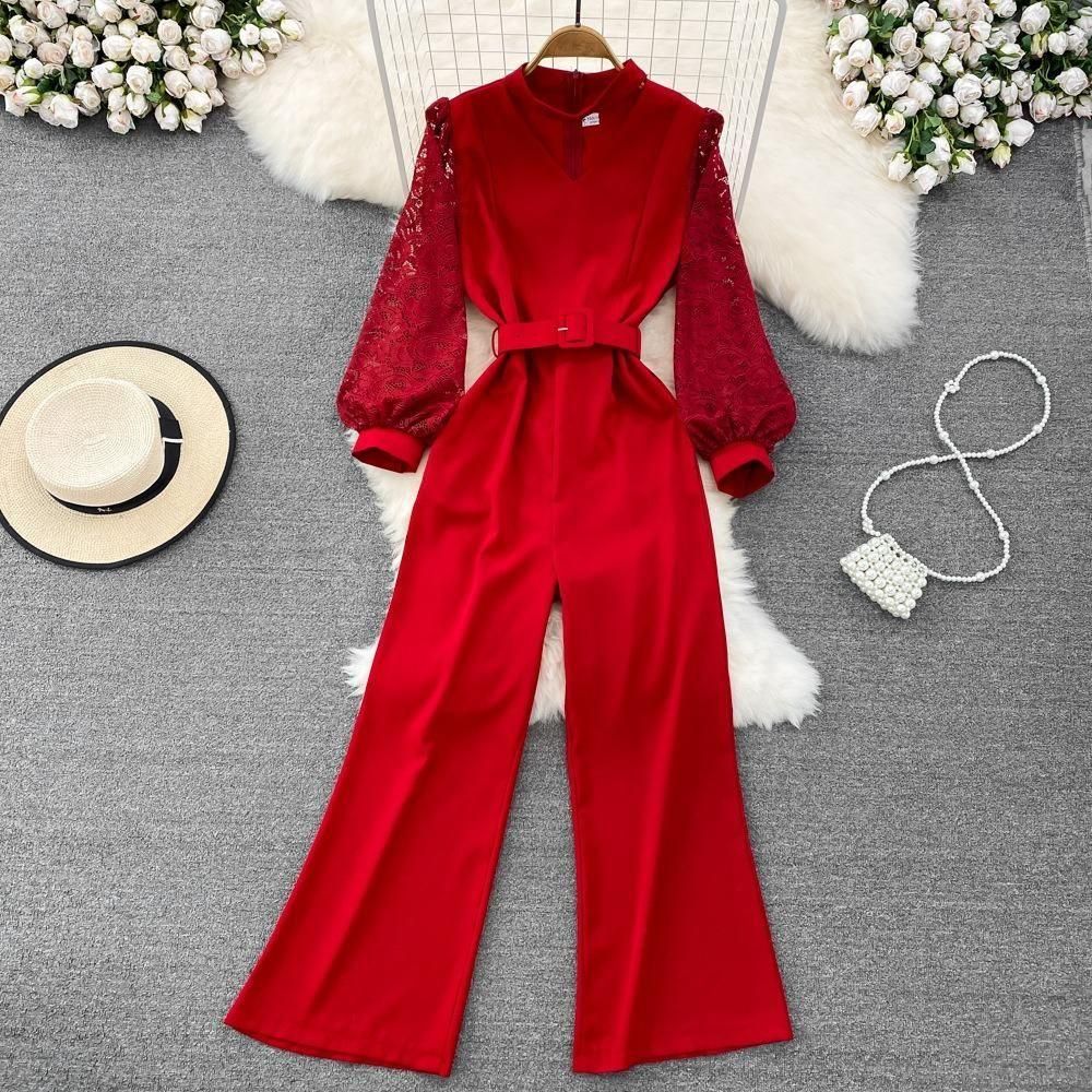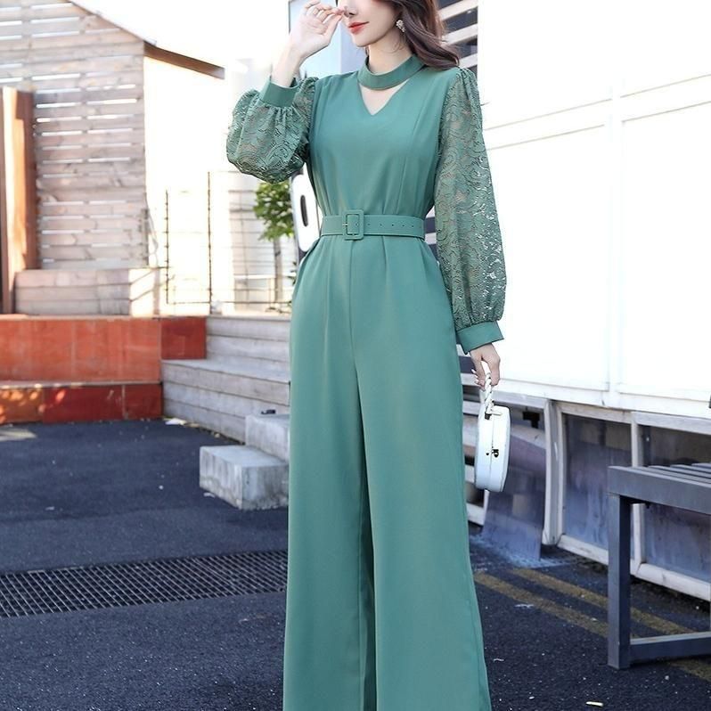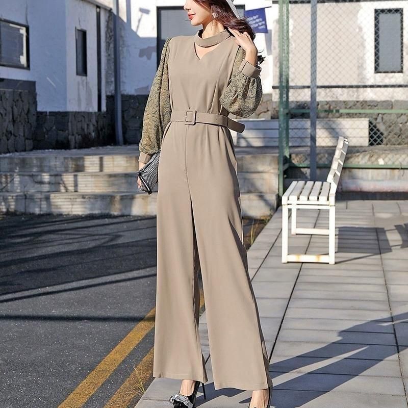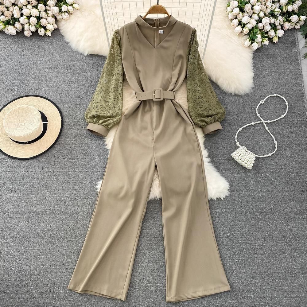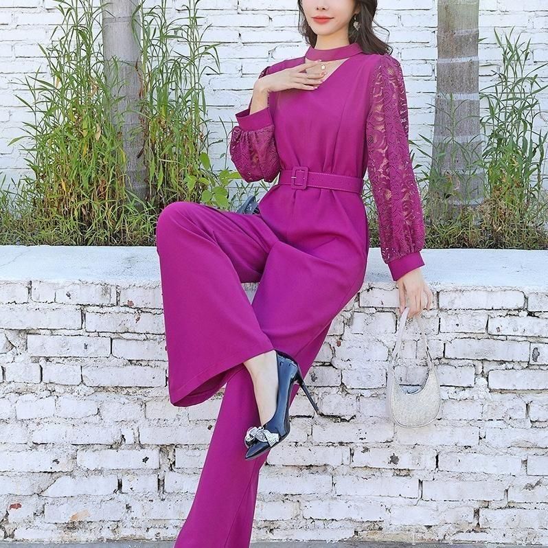 レーススリーブがポイントのジャンプスーツ。