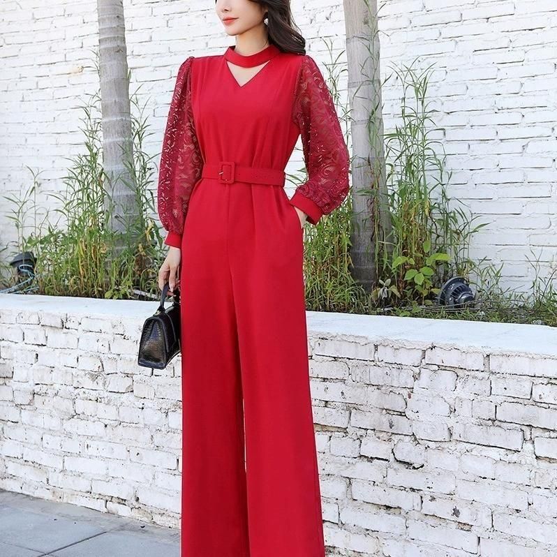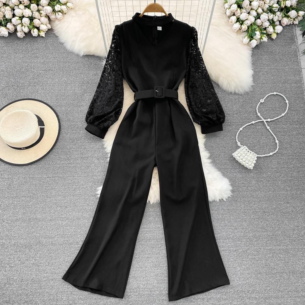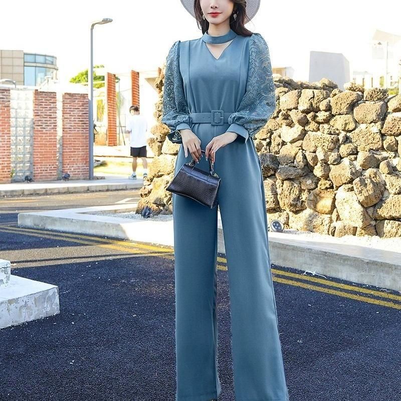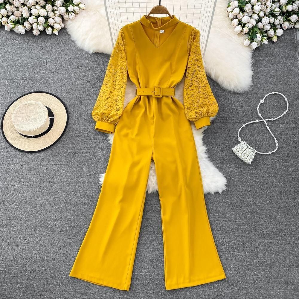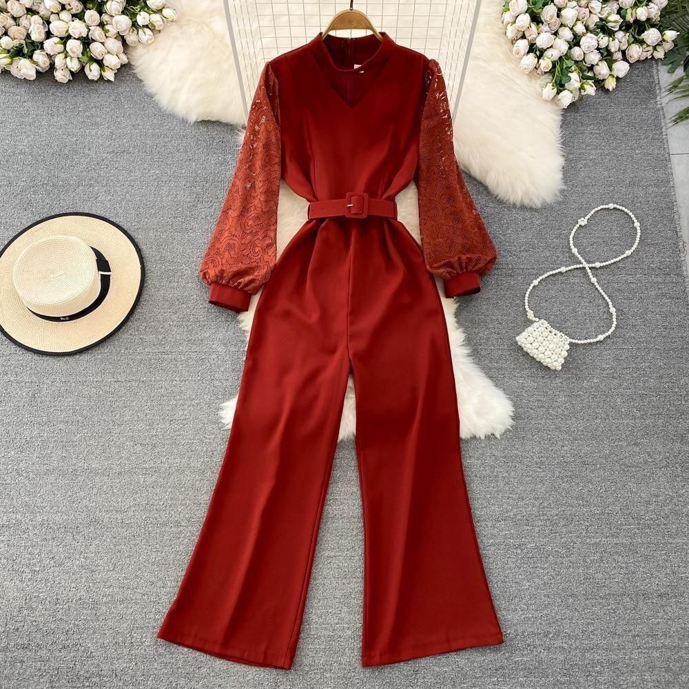 レーススリーブがポイントのジャンプスーツ。