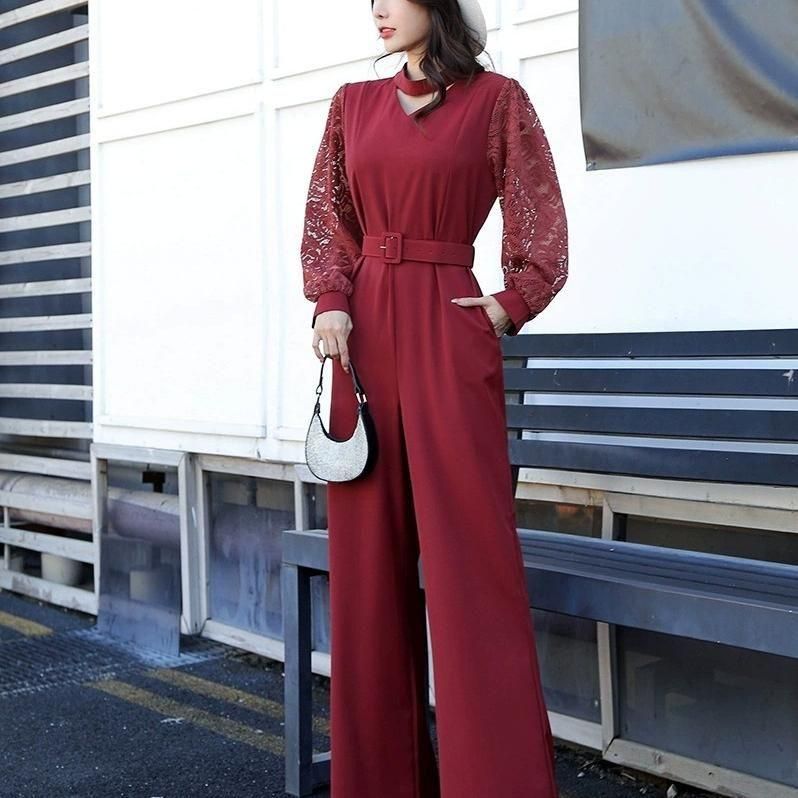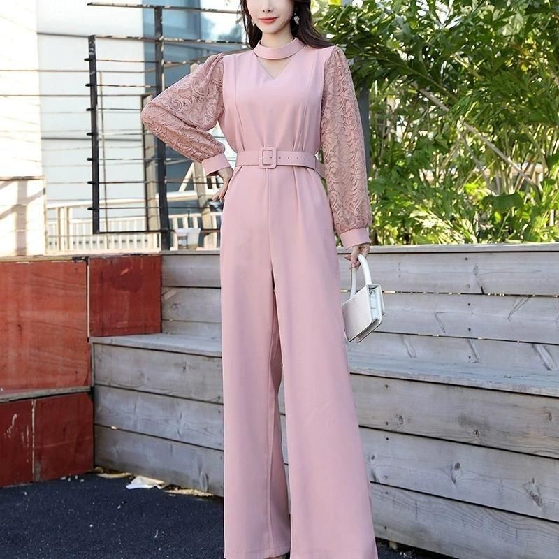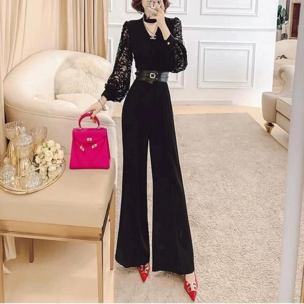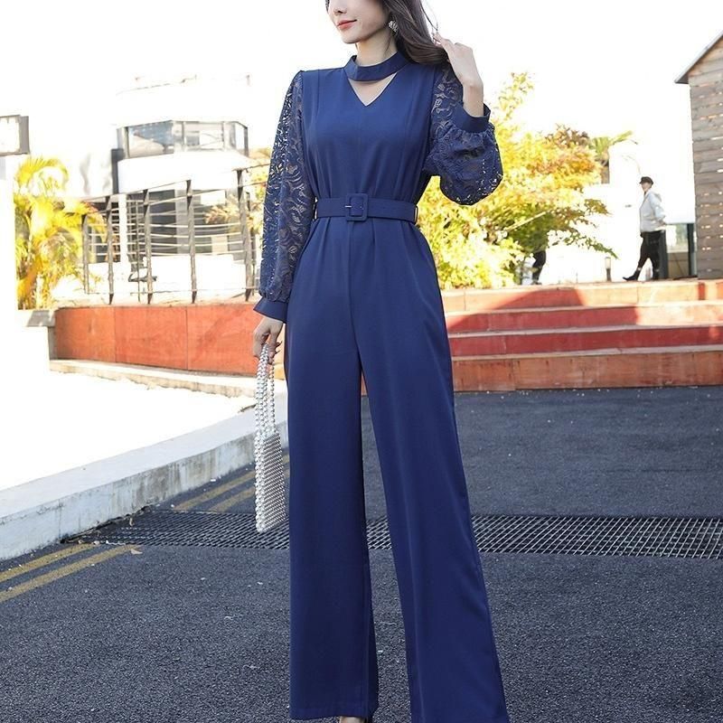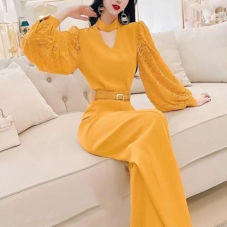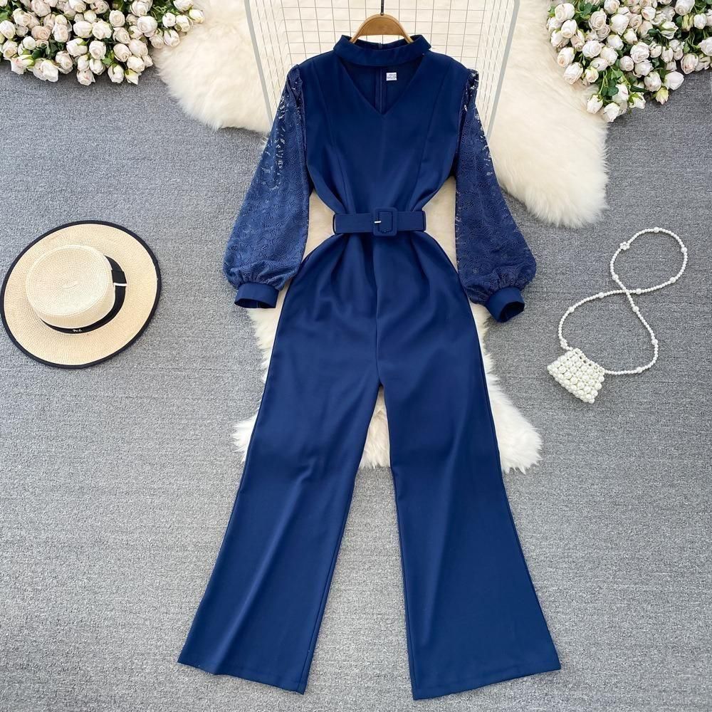 レーススリーブがポイントのジャンプスーツ。