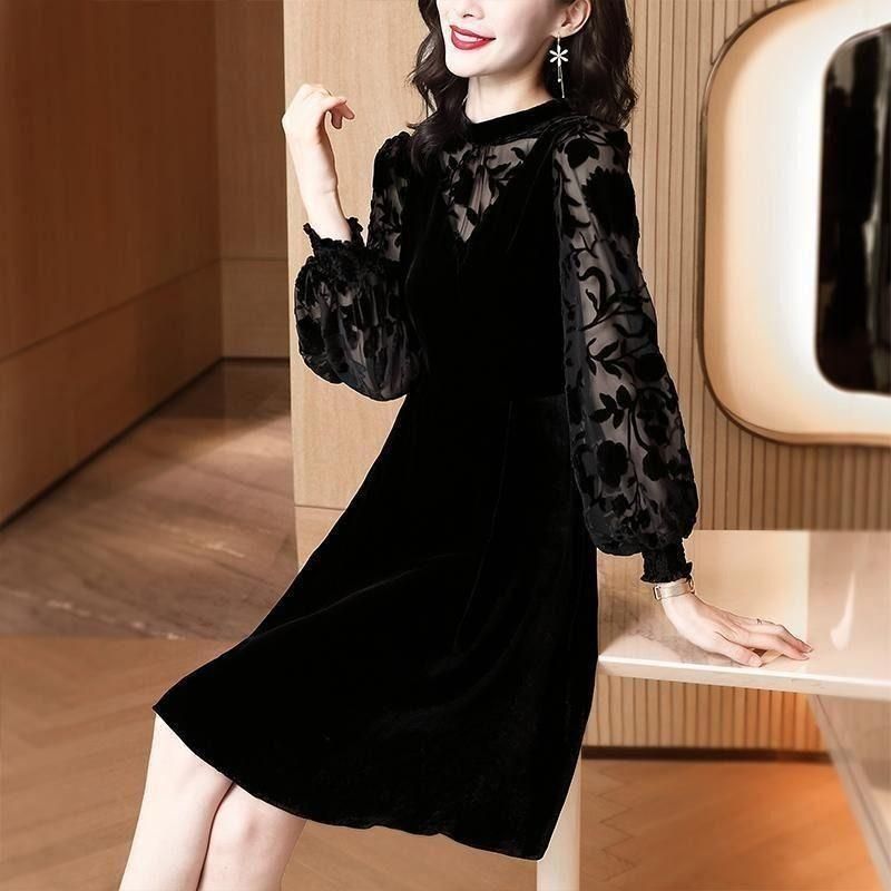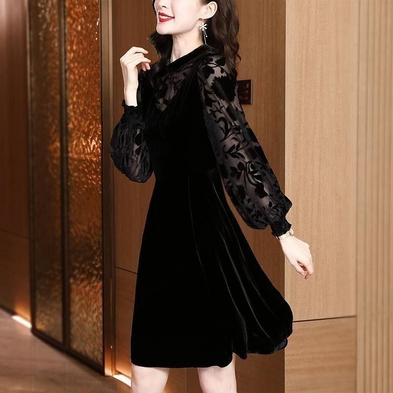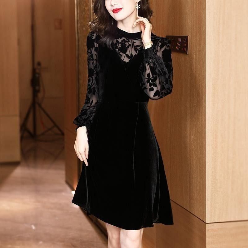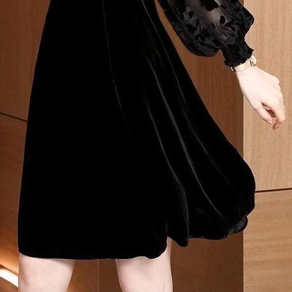 シックなミディアム丈コーデュロイドレス。