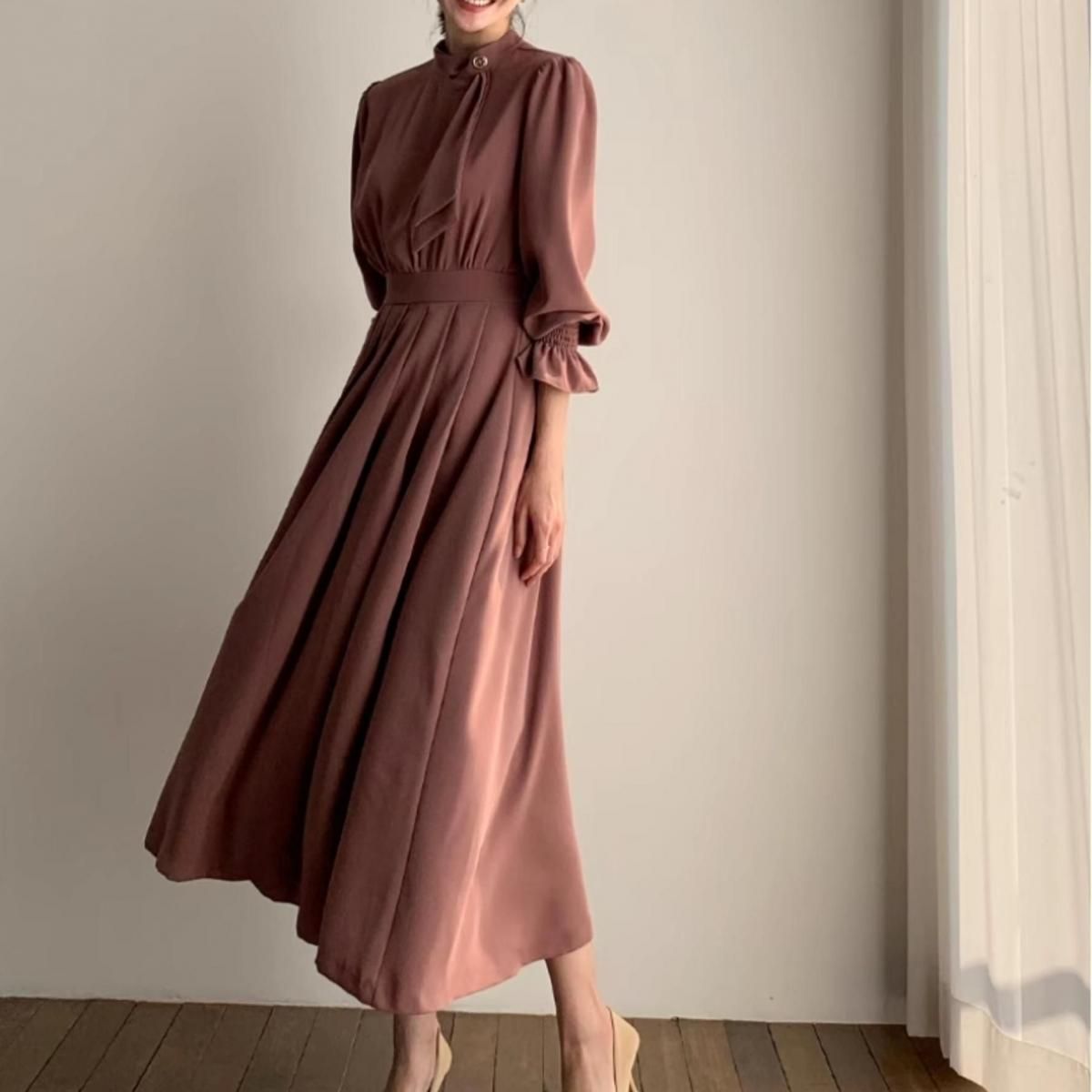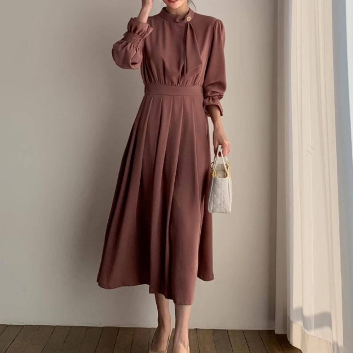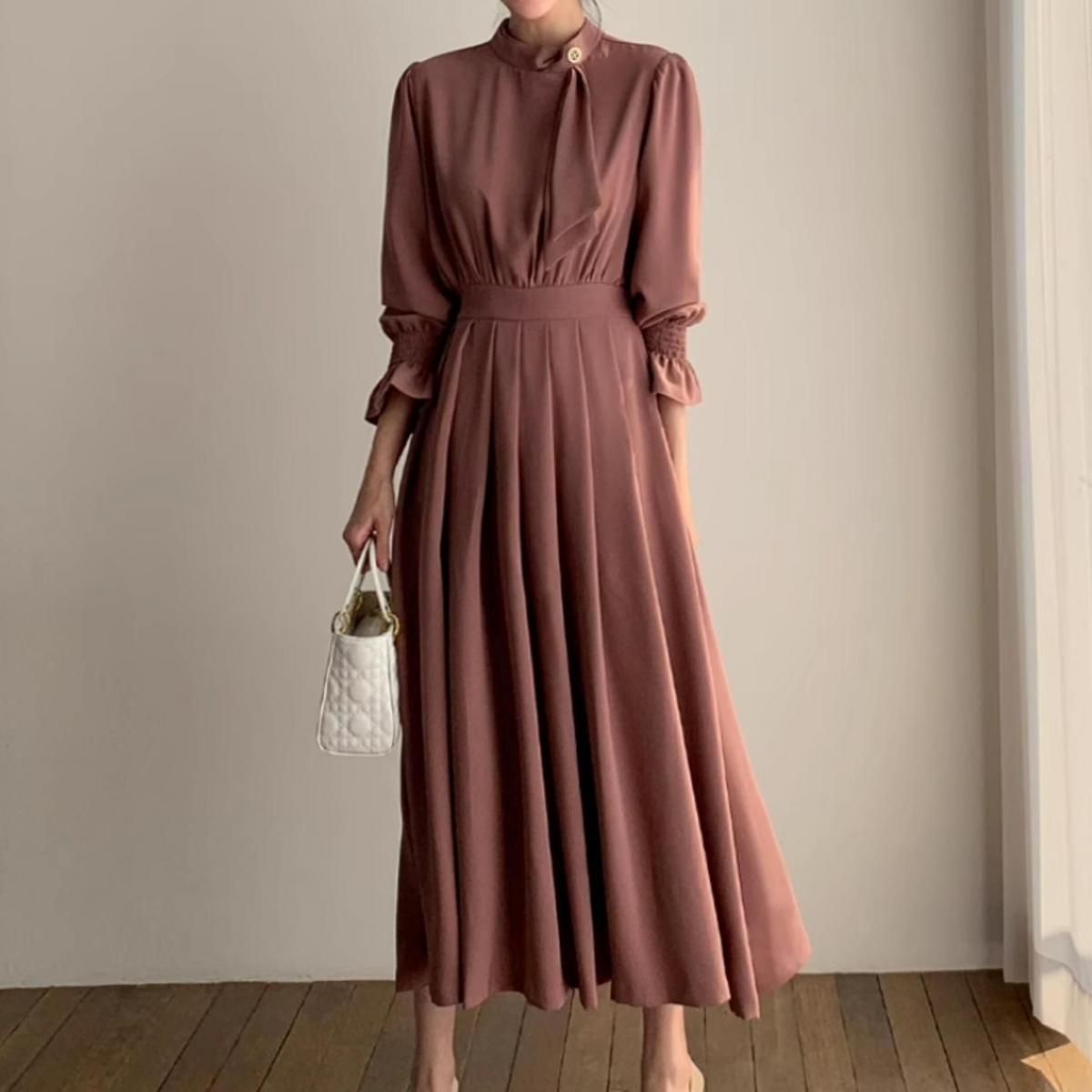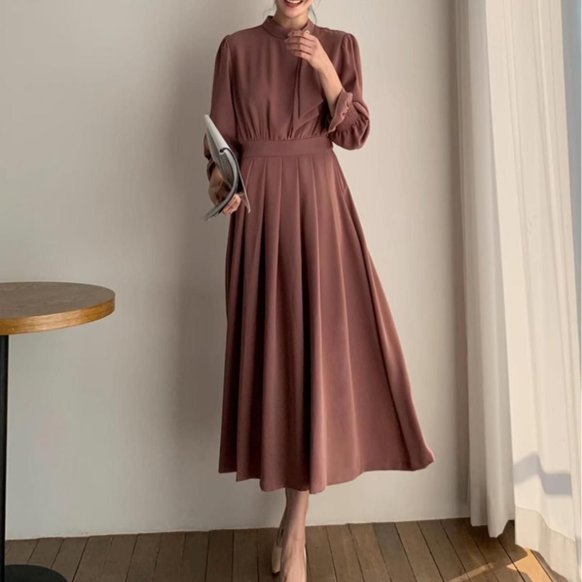 きれいめAラインプリーツドレス。