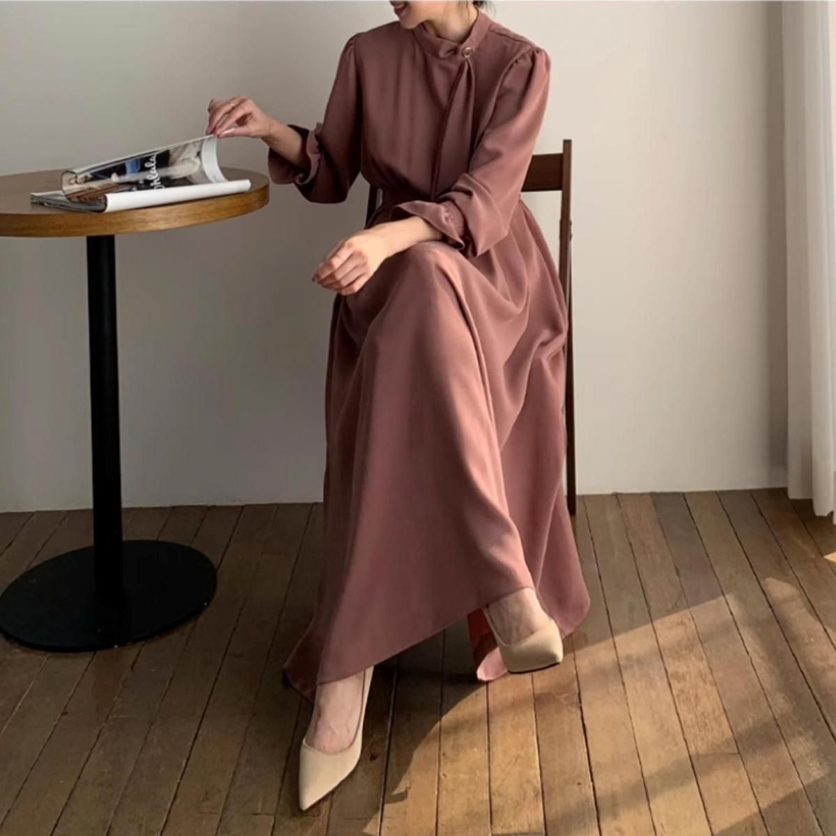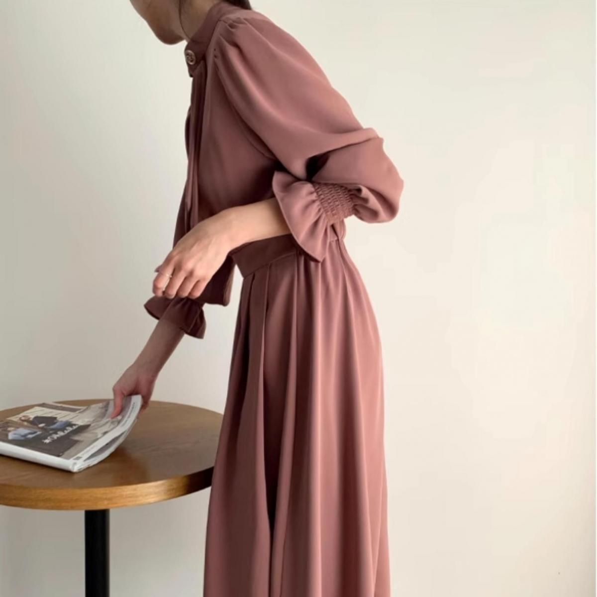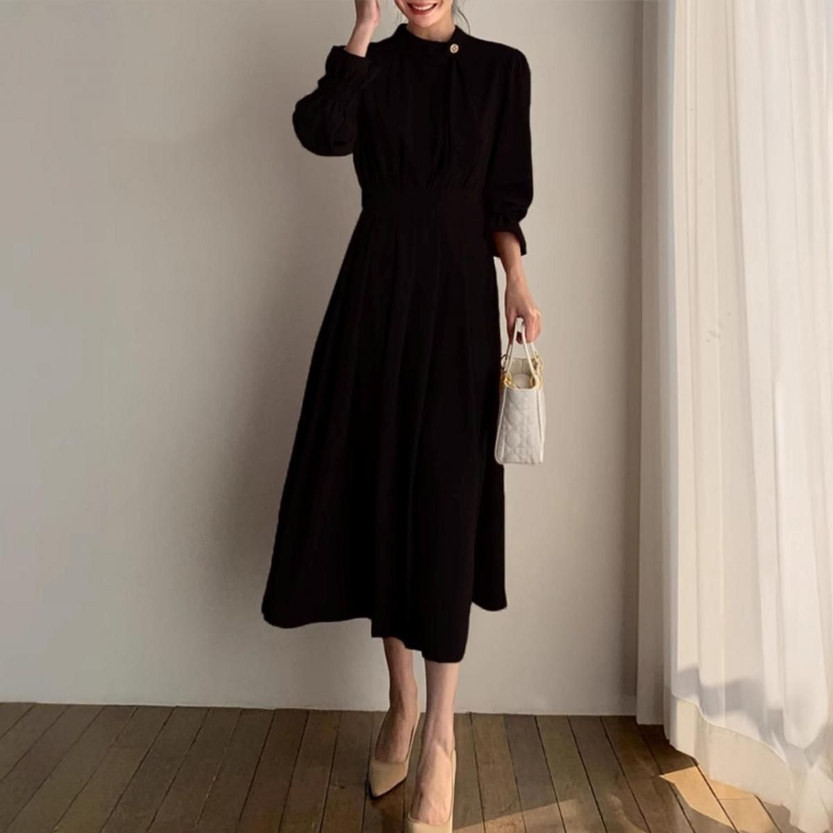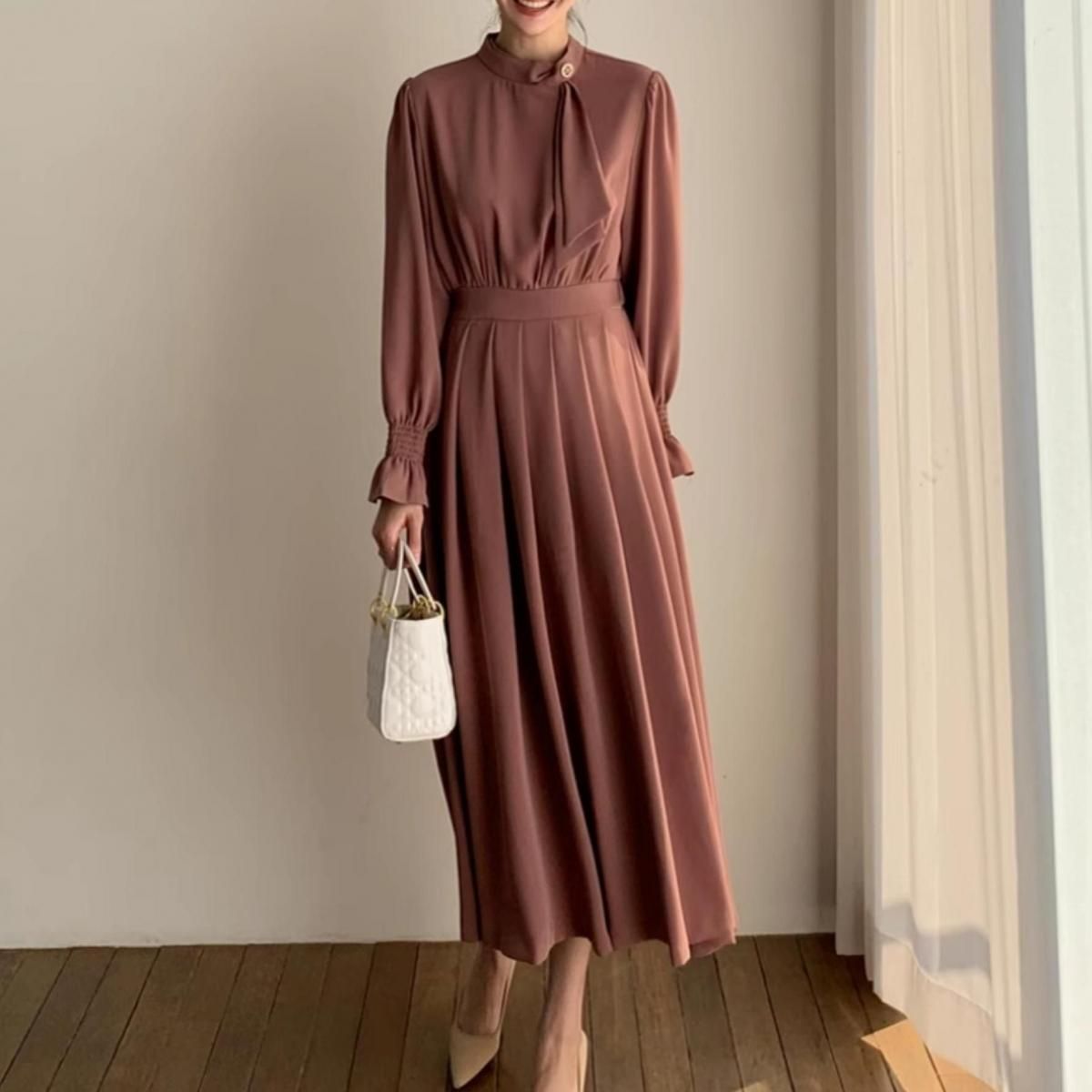 きれいめAラインプリーツドレス。
