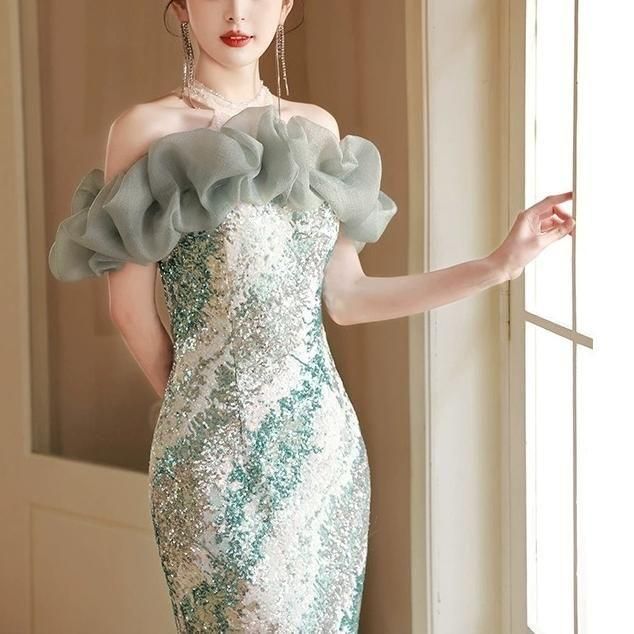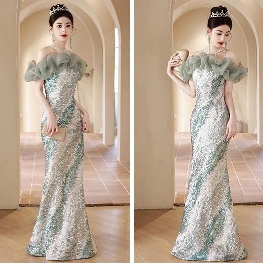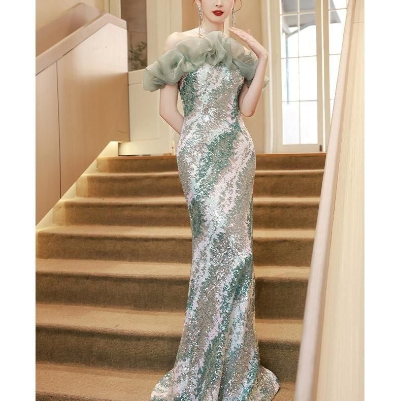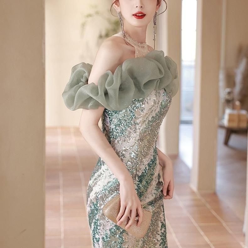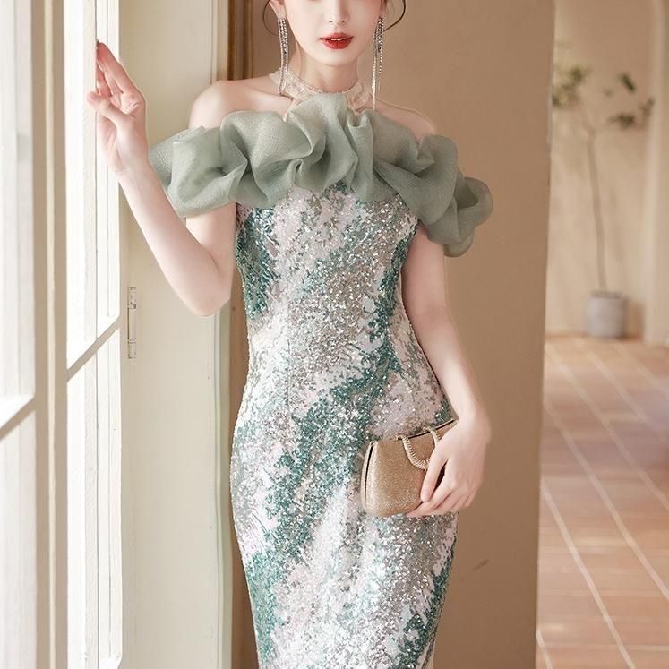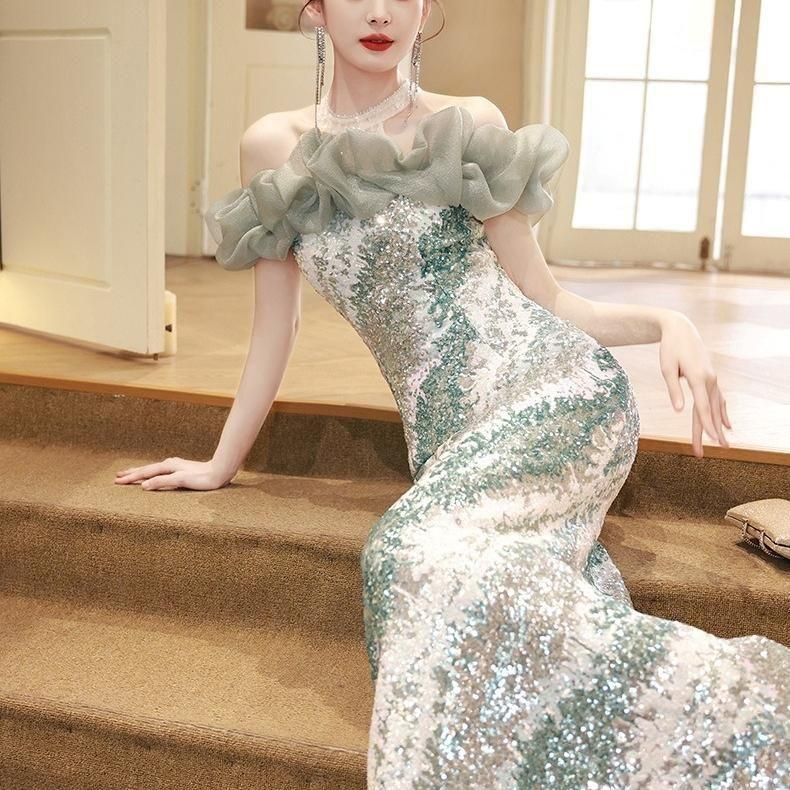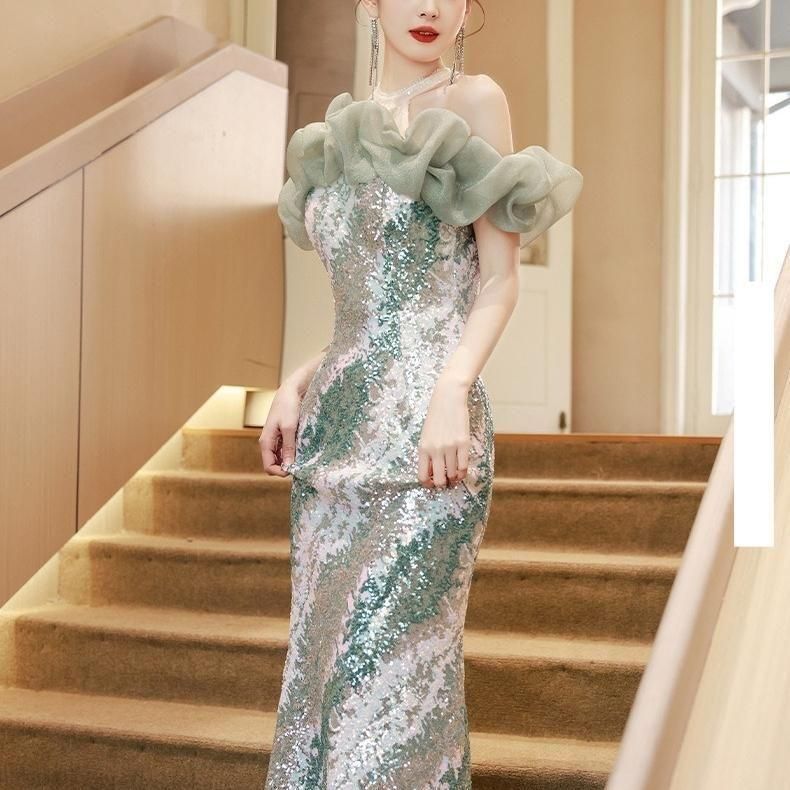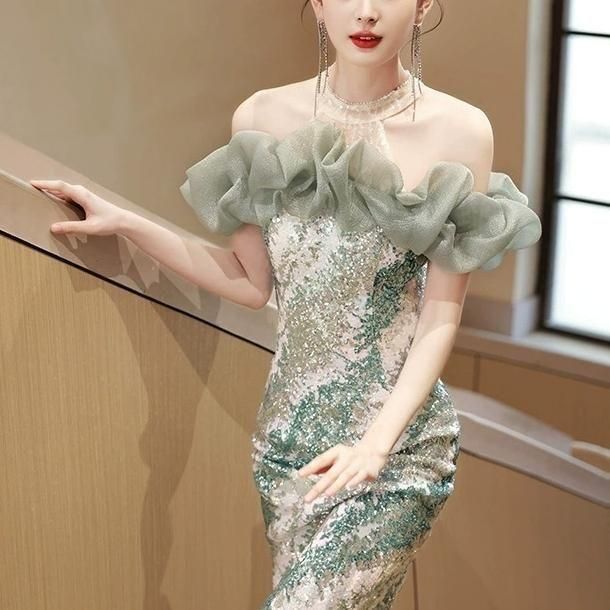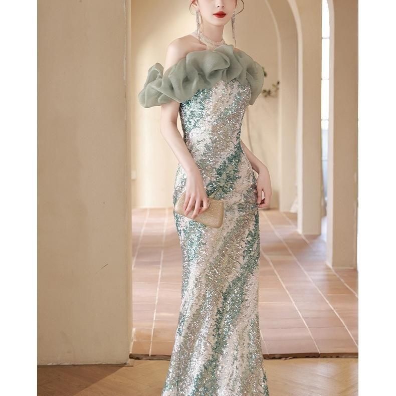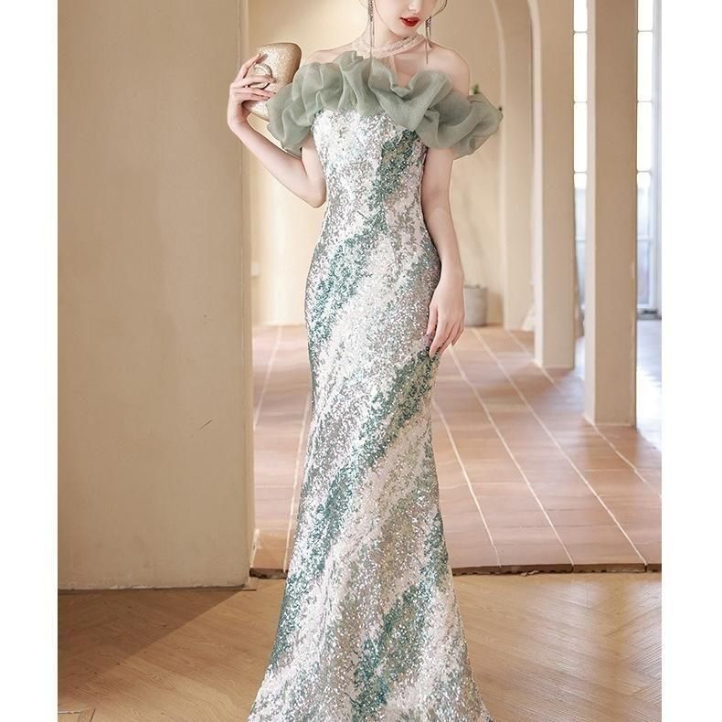 パーティーの主役にぴったりなオフショルダーロングドレス。