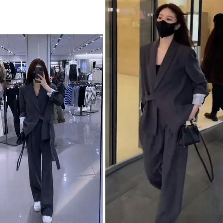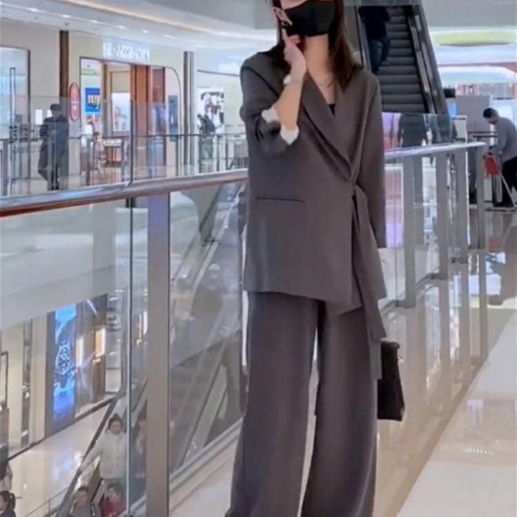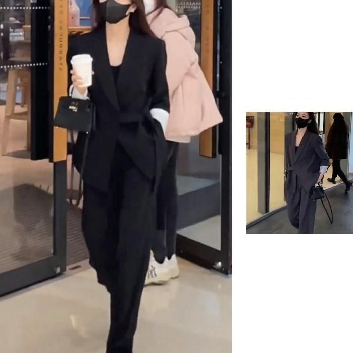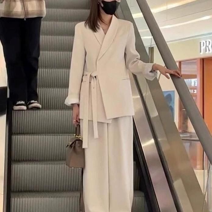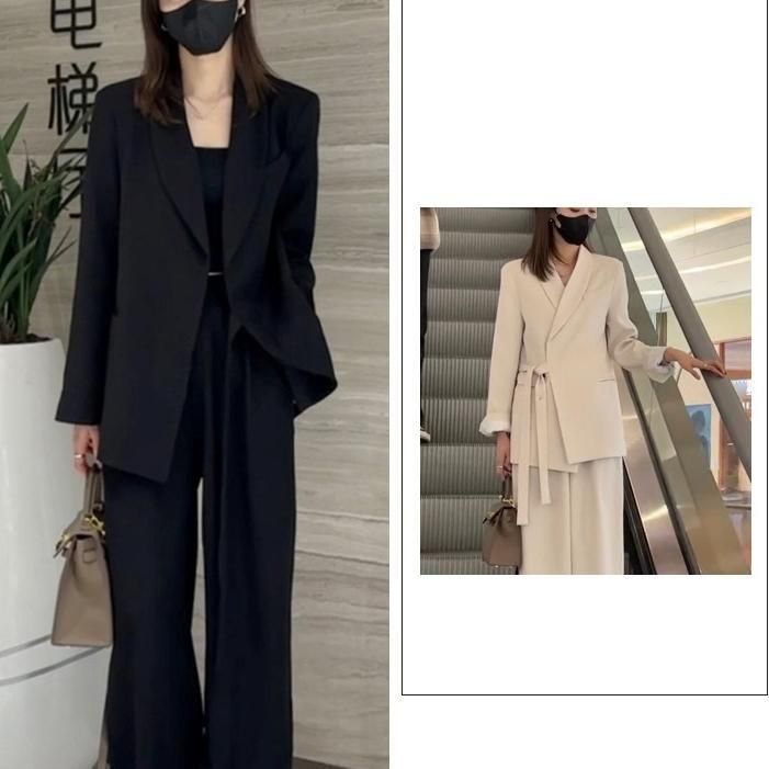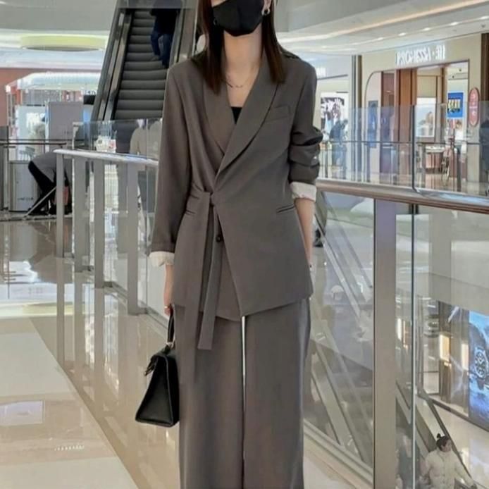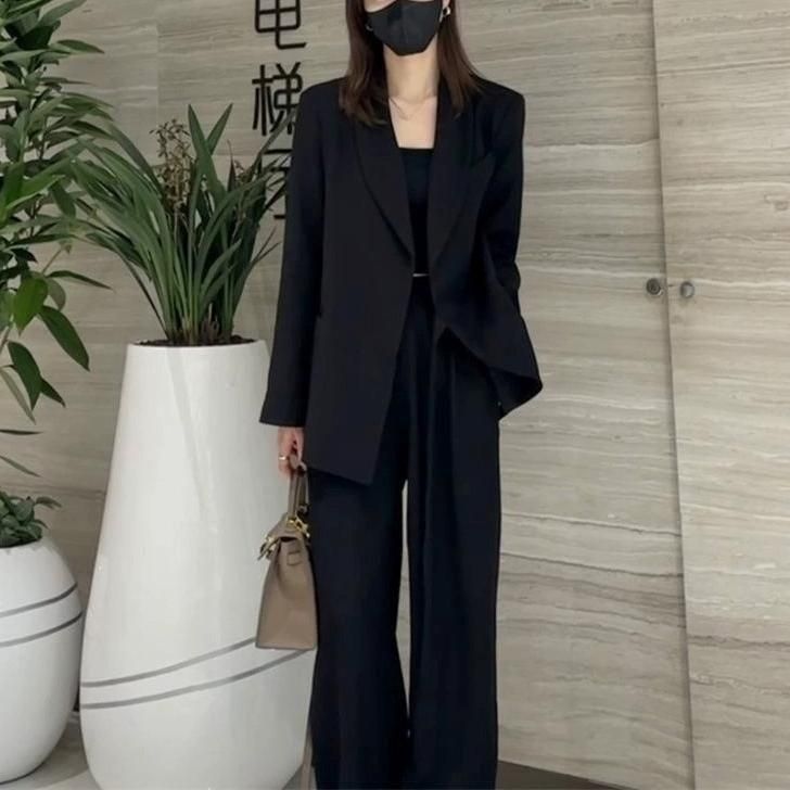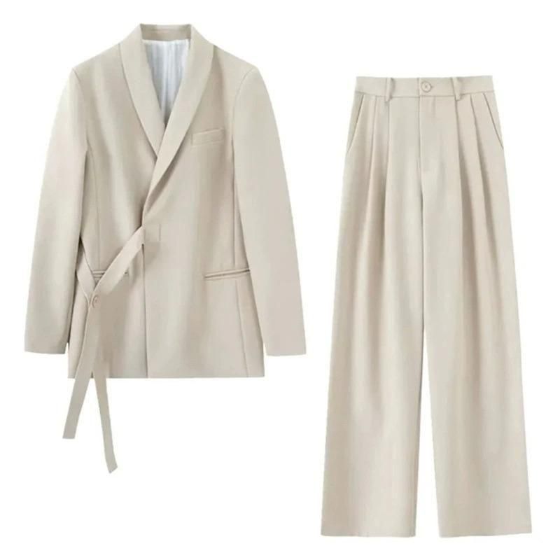 ジャケットとワイドパンツのフォーマルセットアップ。