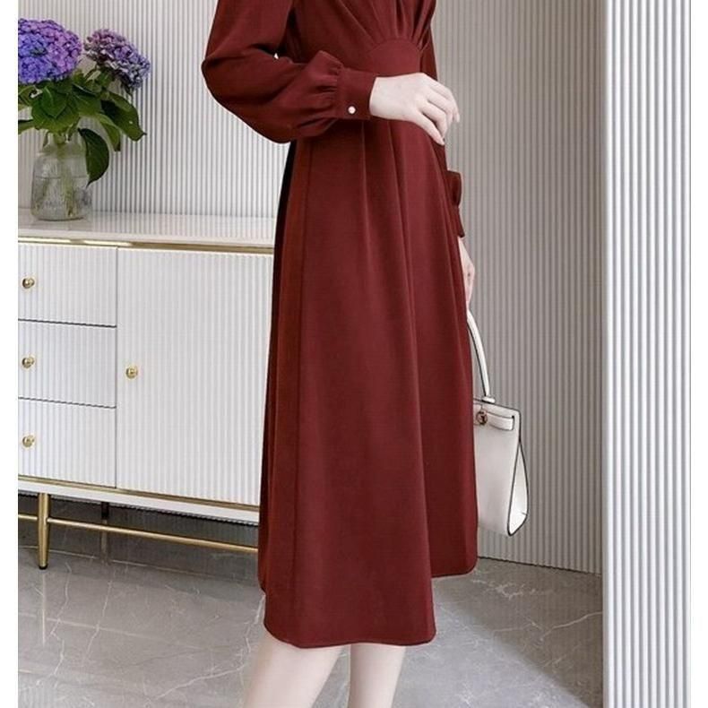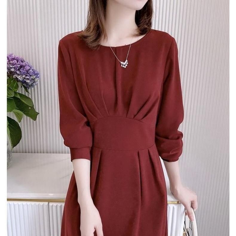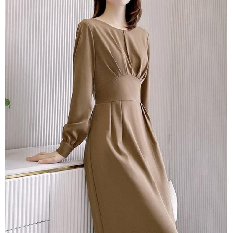 シンプルなウェストマークドレス。