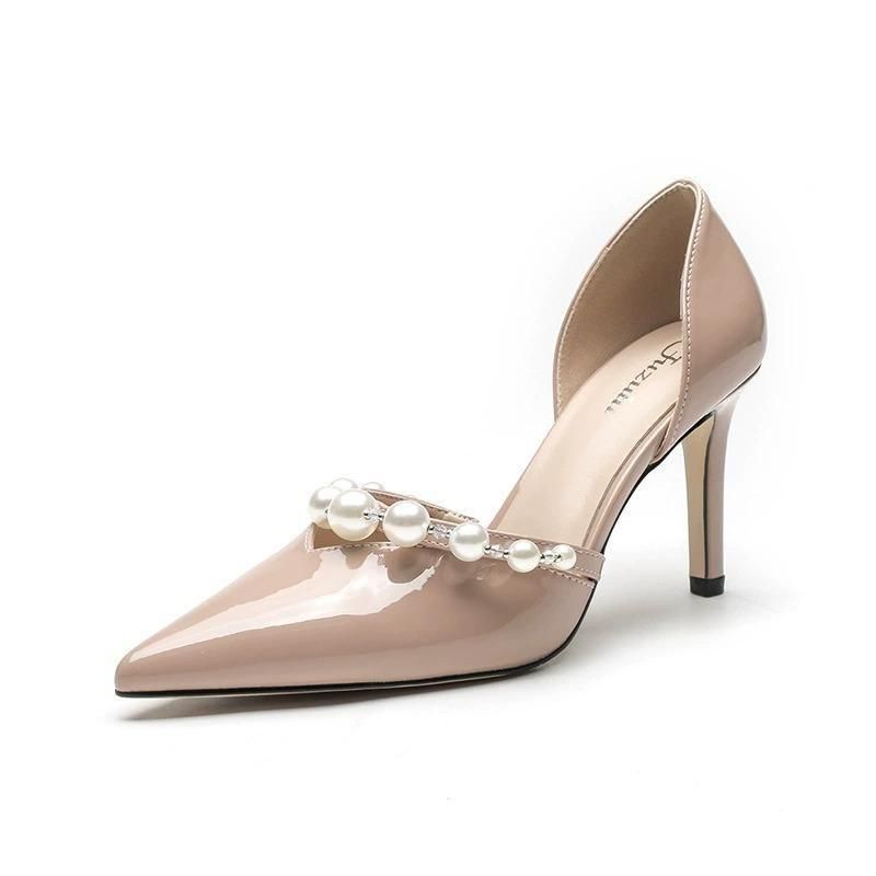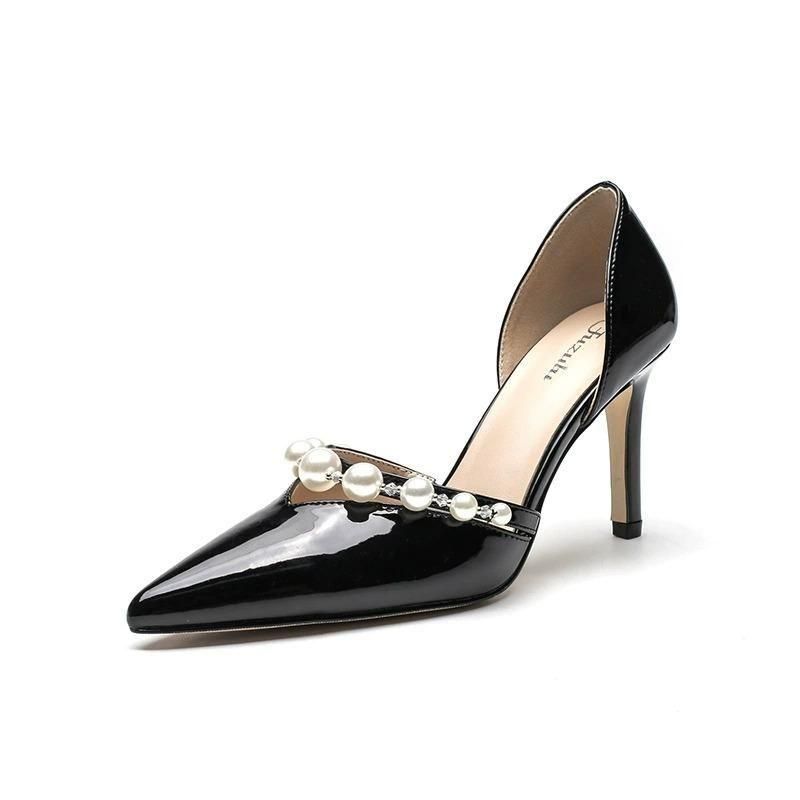 パンプス パール エナメル ポインテッドトゥ ハイヒール ピンヒール きれいめ 大人 結婚式 二次会 お呼ばれ パーティー 3色