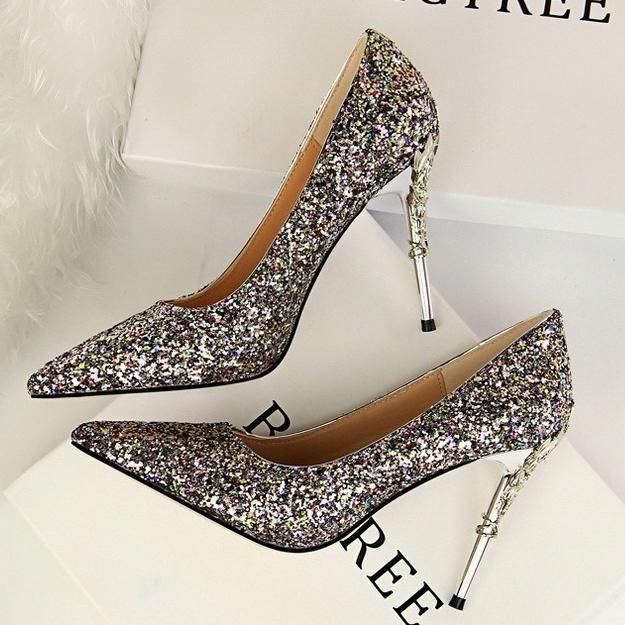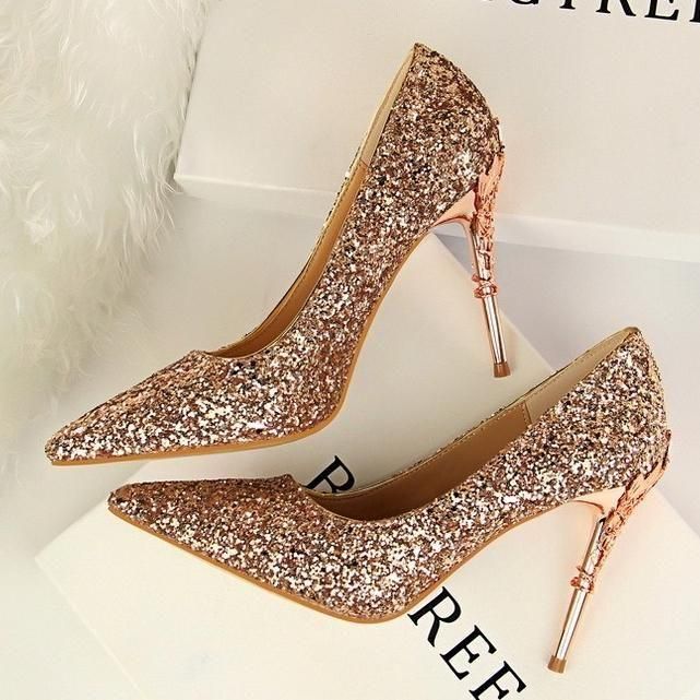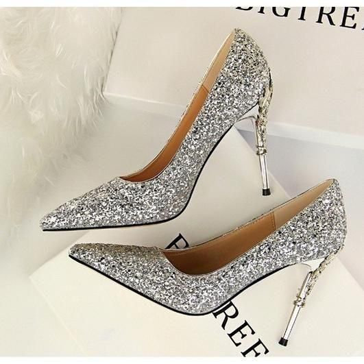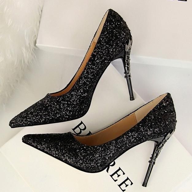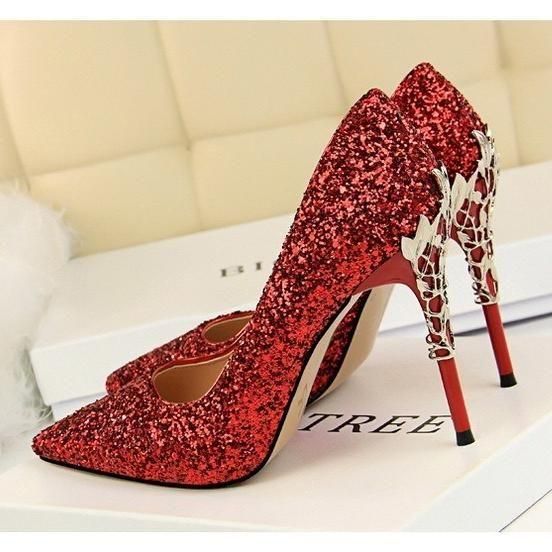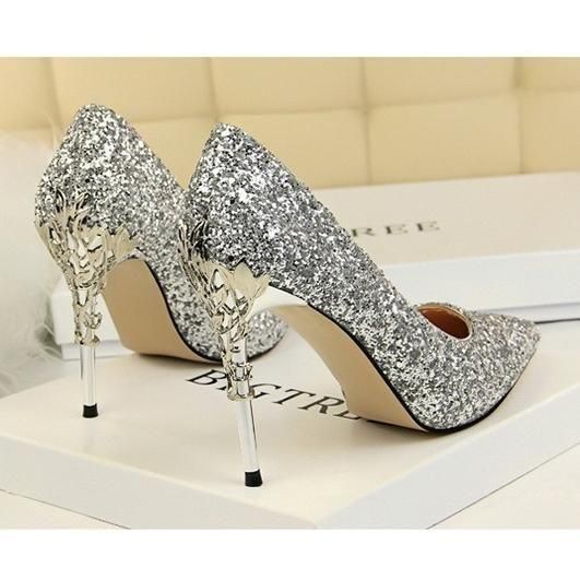 ピンヒールのゴージャスな装飾が後ろ姿も魅力的に。