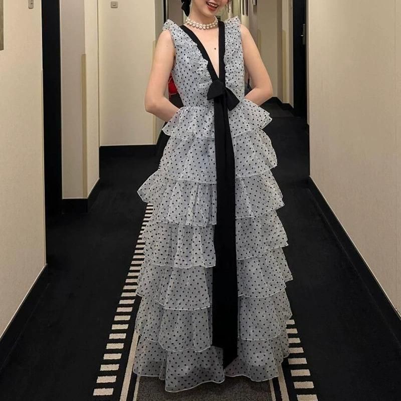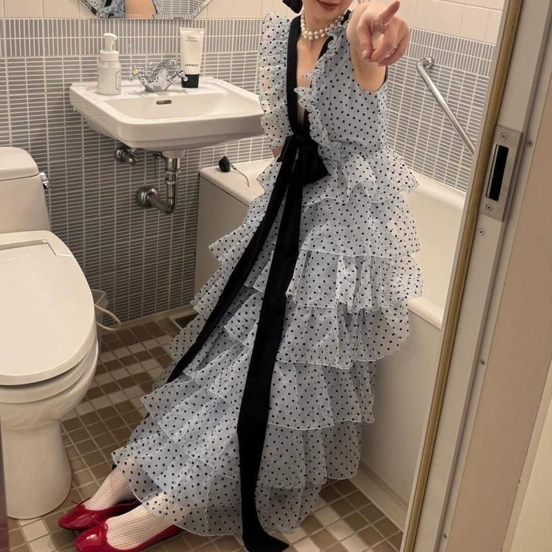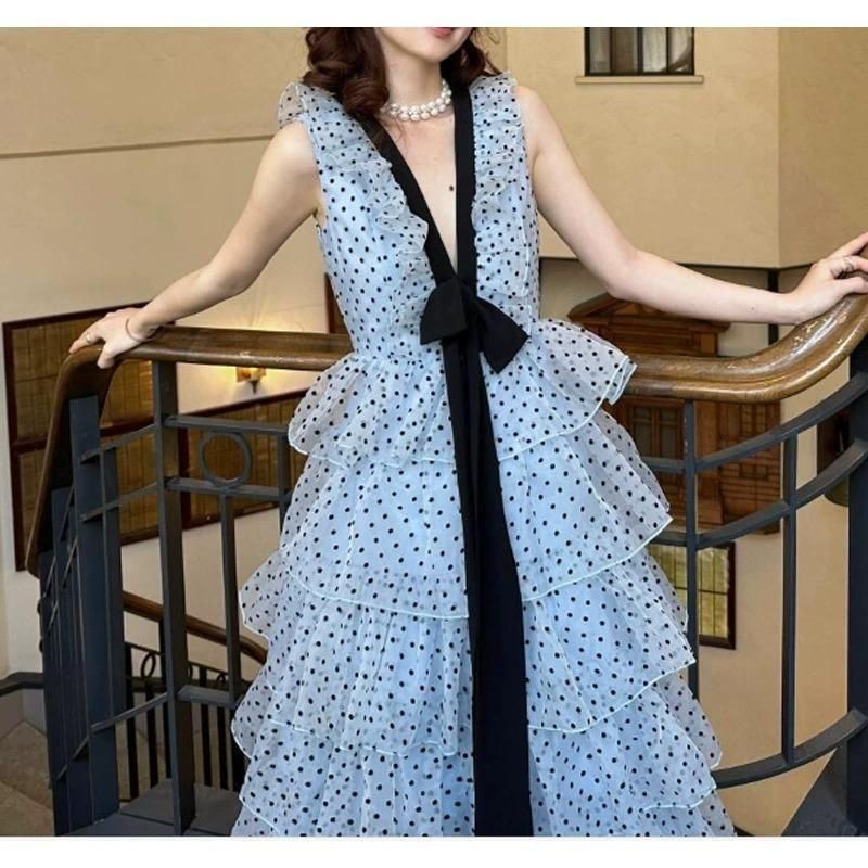ふんだんにあしらわれたフリルが華やかなドレスです。