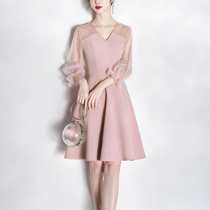 パーティーやお呼ばれにぴったりのAラインドレス。