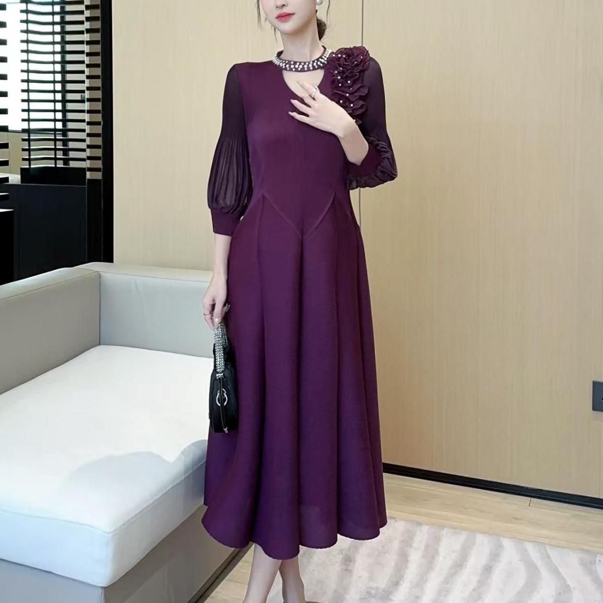 ウェストの切り替えやボリュームスリーブが上品かつ華やかなドレスです。