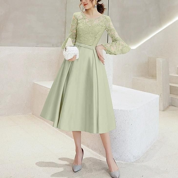 ウェストリボンがくびれを強調し、メリハリのある体型に見せてくれます。