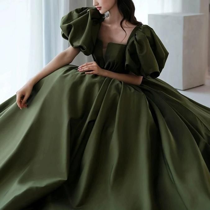 ボリュームたっぷりのパフスリーブとスカートが華やかな印象に。