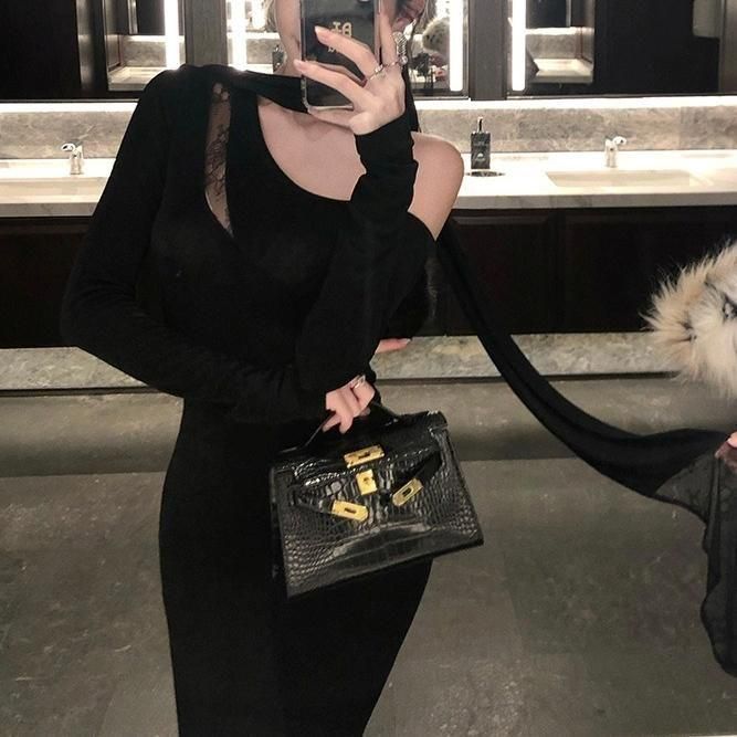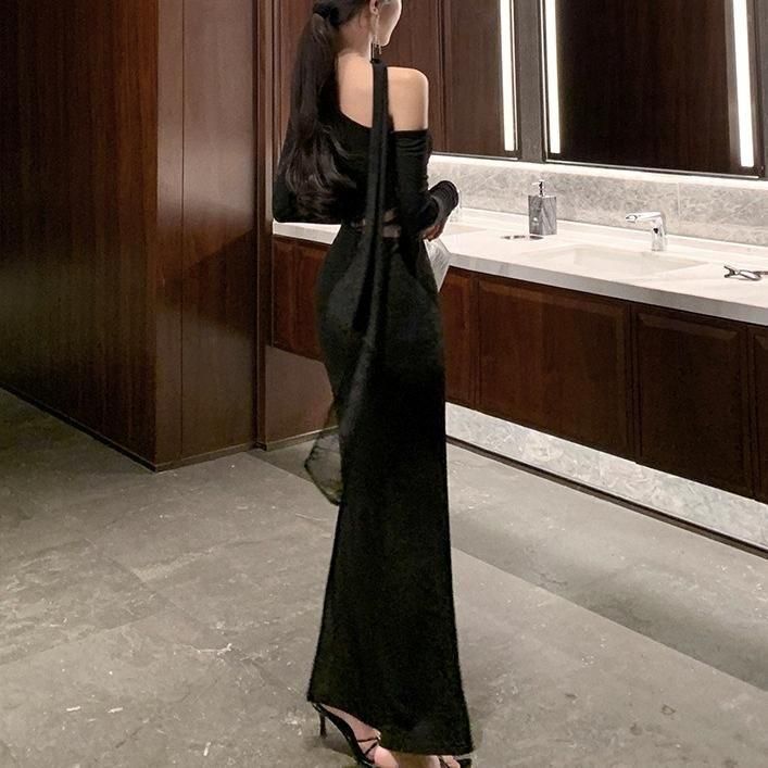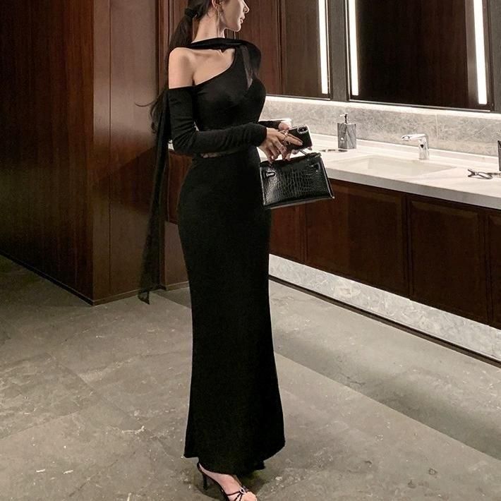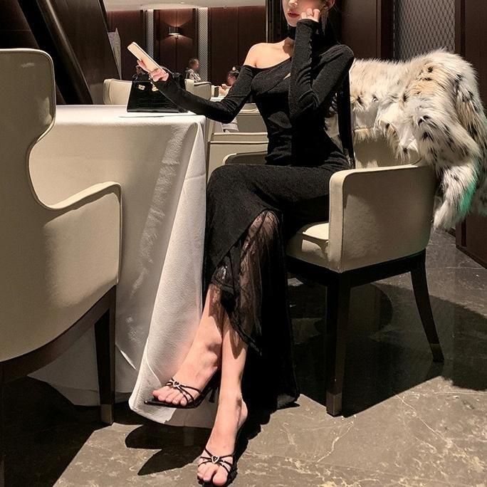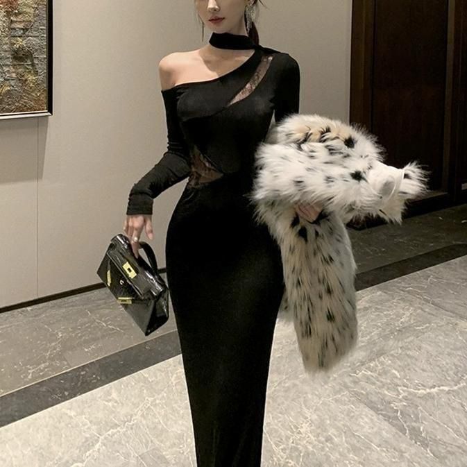 アシンメトリーなデザインがポイントのワンショルダードレス。