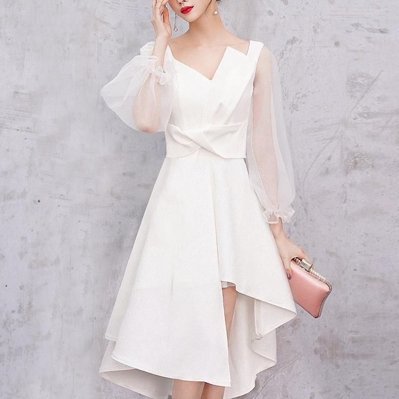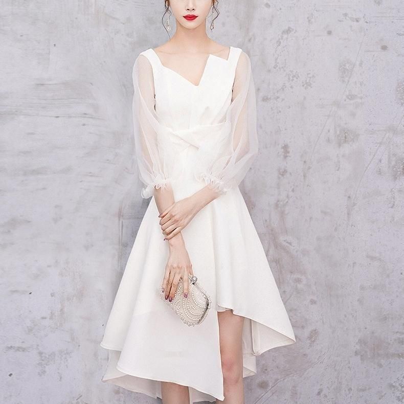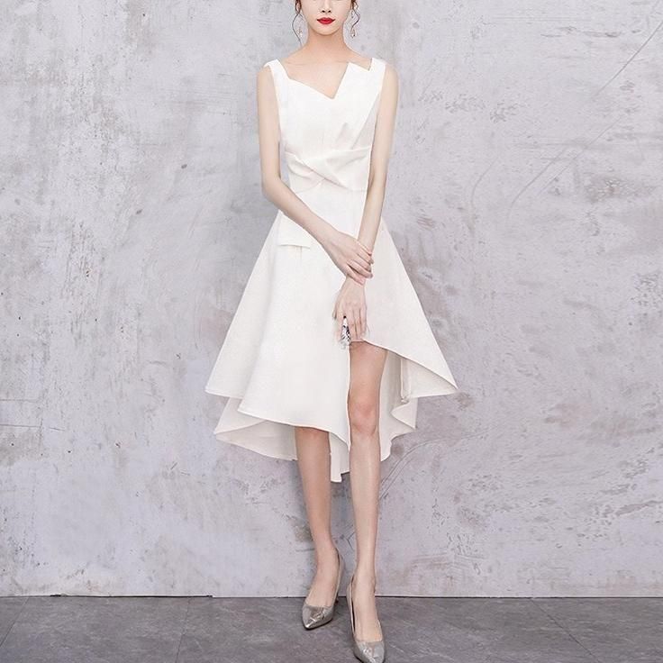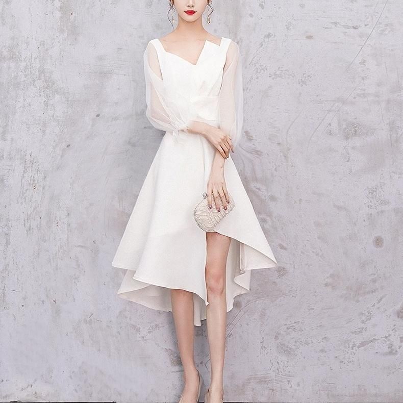アシンメトリーなデザインが目を引くミディアム丈・ロング丈ドレス。