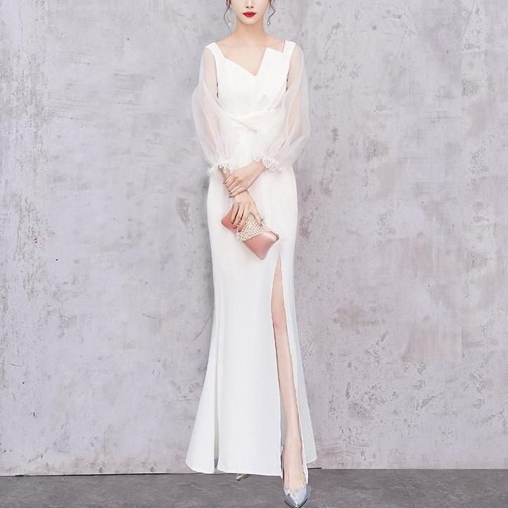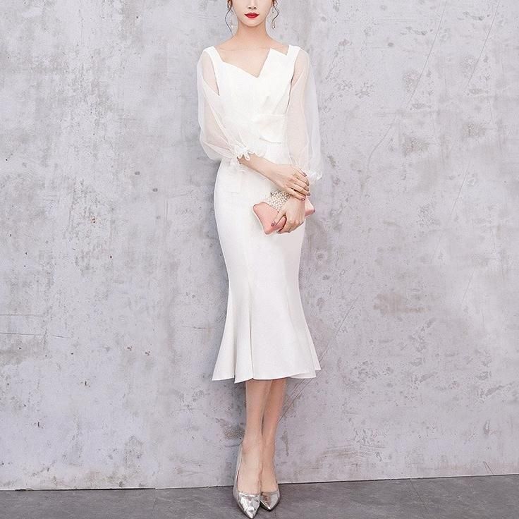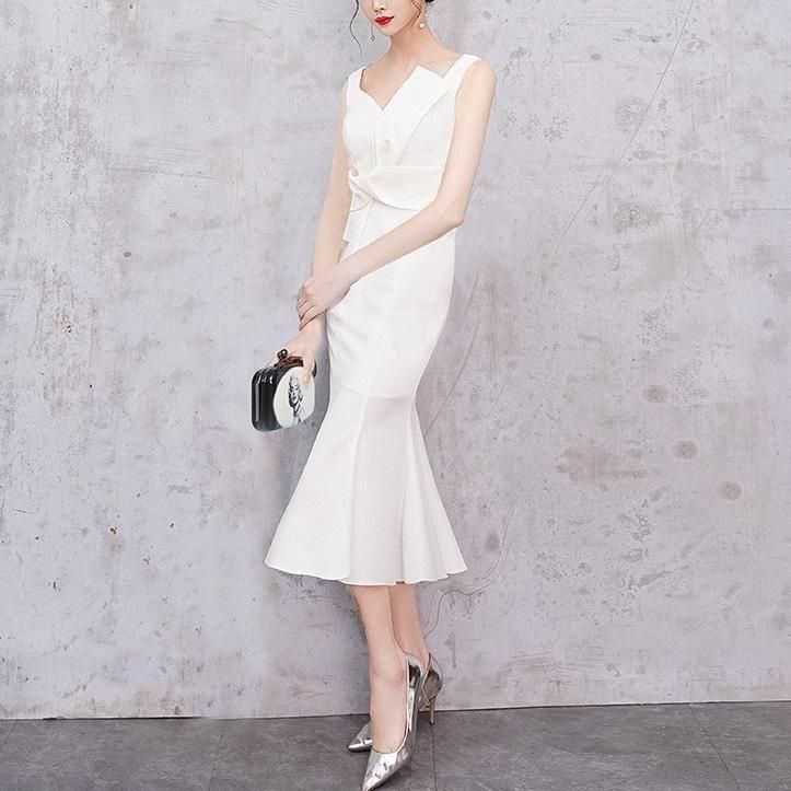 ホワイト マーメイド ミディアム丈 ノースリーブ