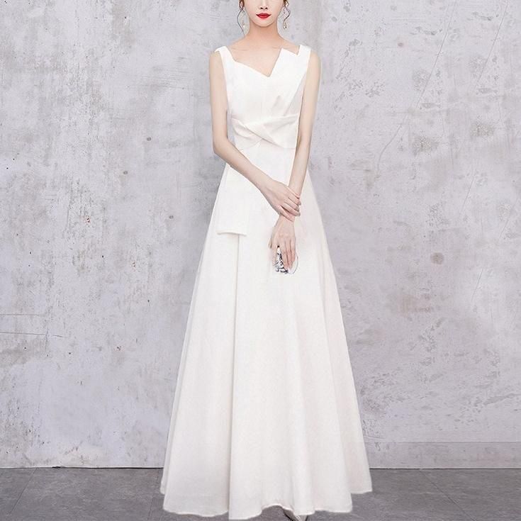 ホワイト Iライン ミディアム丈 ノースリーブ